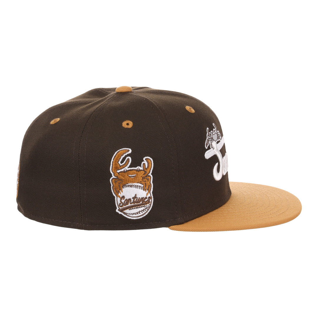 Description: Featuring brown and orange tones, the Sandbag Vintage Inspired fitted collection takes some of our favorite teams and their logos, and recontextualizes them to create fashion pieces that will shine in your wardrobe. The contemporary high crown structured fitted cap features raised embroidery front logo with embroidered side patch and rear league logo.
