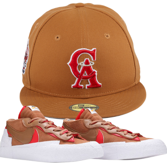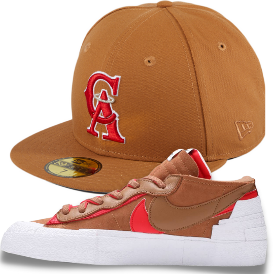 The Los Angeles Angels Cowboy Pack fitted hat is a Hat Club Exclusive drop. The fitted hat features a light western brown six panel structured high crown, embroidered eyelets and fabric squatchee button. The flat bill of the fitted cap is also light brown with a grey bottom undervisor and black sweatband. The front panel features the California Angels 1995 - 1996 primary logo embroidered in red thread outlined in white thread. The right panel features a 35th Anniversary side patch. The back of the crown includes the official MLB Batterman logo embroidered in the classic red, white and blue thread.