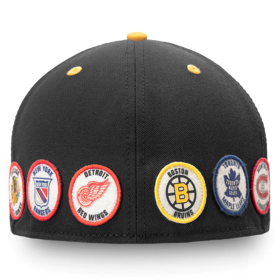 Get a unique way to express your love for the NHL with this Original Six fitted hat from Fanatics Branded. The embroidered graphics on this cap refer to the six original franchises in the league. This includes the Boston Bruins, Chicago Black Hawks, Detroit Red Wings, Montreal Canadians, New York Rangers and the Toronto Maple Leafs.