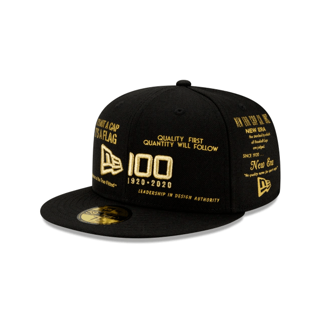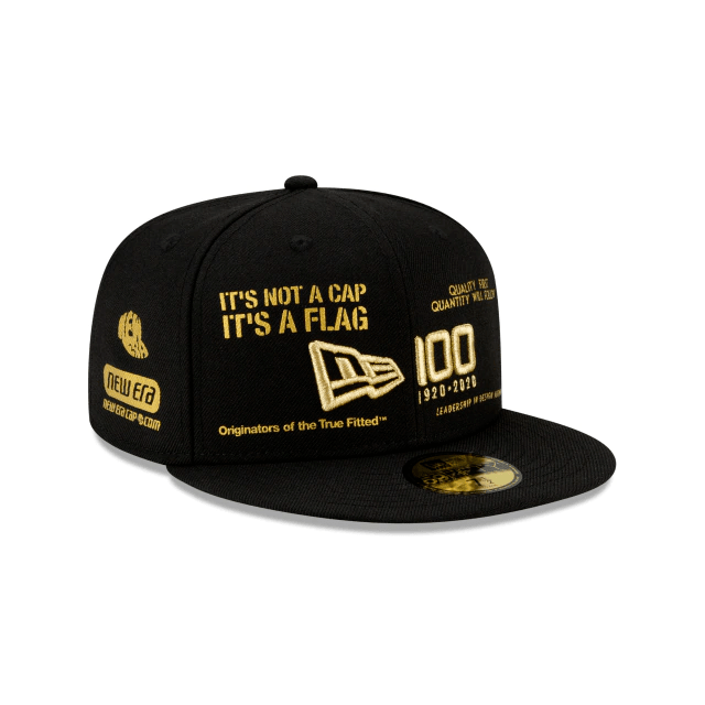 Rounding out our 100th Anniversary Celebration, the New Era 100th Anniversary All Over 59FIFTY Fitted Cap features an embroidered 100th Anniversary logo at the front panels with brand slogans and logos from the past 100 years found throughout the rest of the crown. Additional details include a premium satin lining with similar details and custom interior taping with our 100th Anniversary Logo.