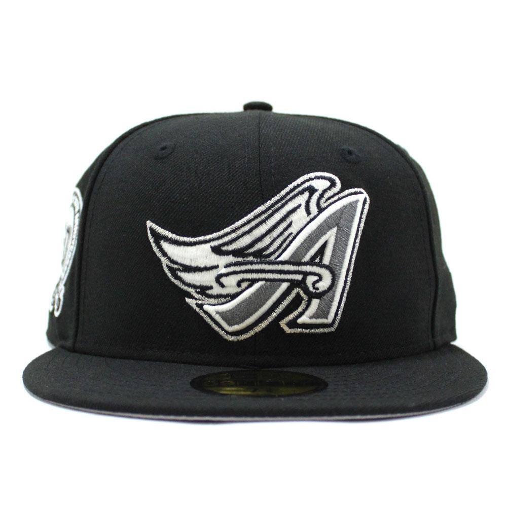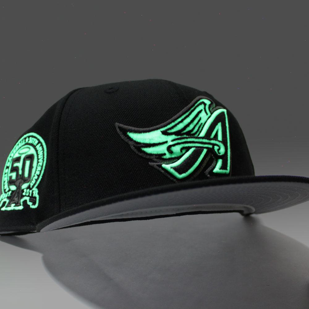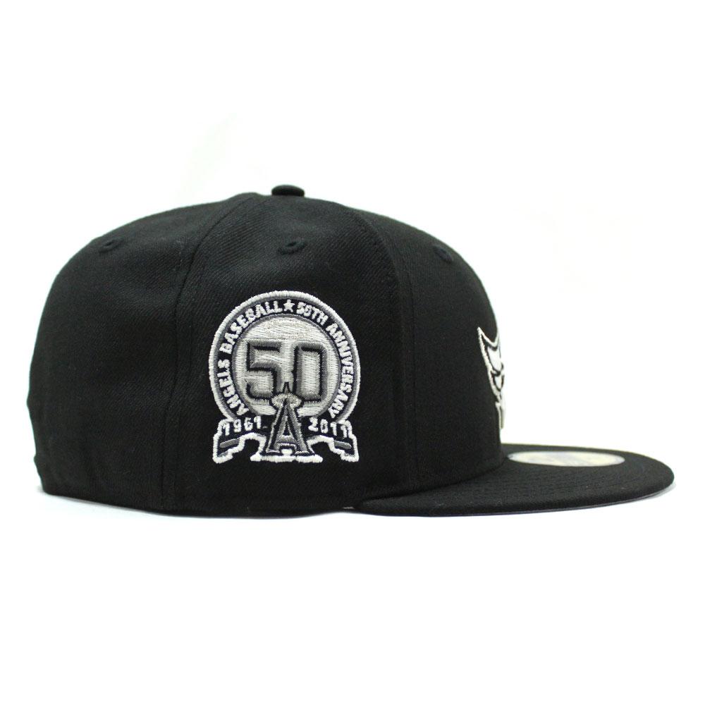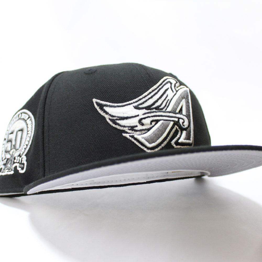 Anaheim Angels 50th Anniversary New Era 59Fifty Fitted Hat is Black & Grey Under Brim.