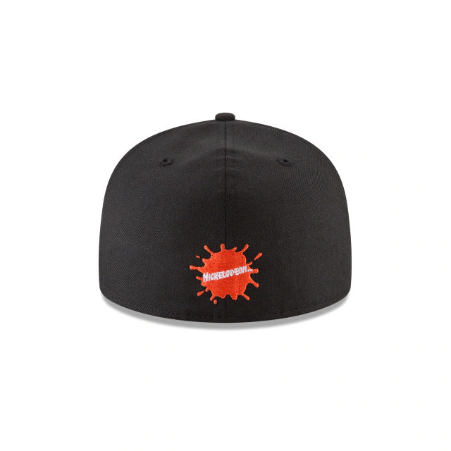 The Angelica Rugrats Nickelodeon 59FIFTY Fitted Cap features Angelica from Rugrats embroidered at the front panels with the Nickelodeon splatter logo at the rear and a Kelly Green undervisor.