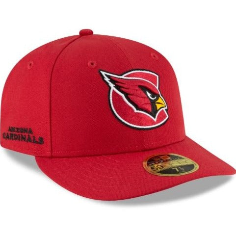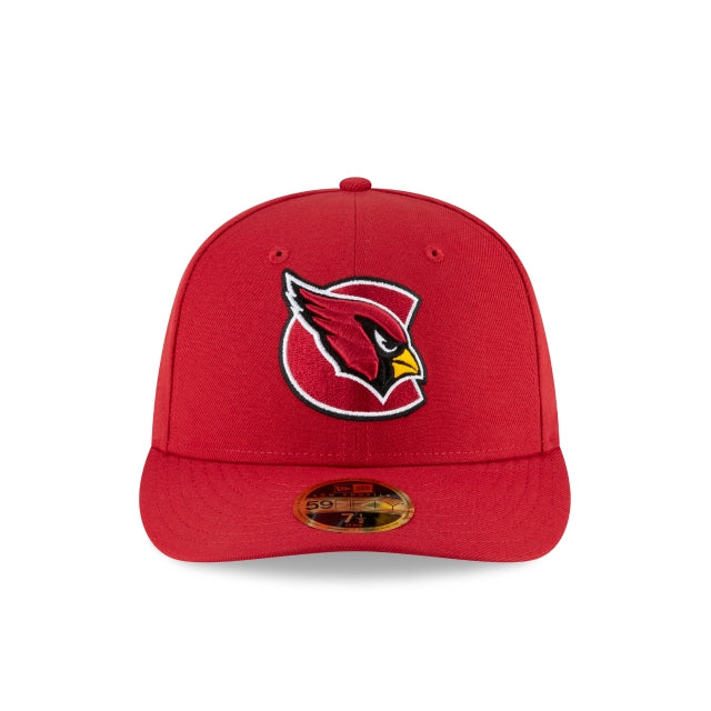 The Arizona Cardinals Logo Mix Low Profile 59FIFTY Fitted Cap features a blend of Cardinals logos embroidered at the front panels with a team wordmark at the right-wear side and a team color NFL Shield at the rear. The undervisor of this cap matches the cap color.