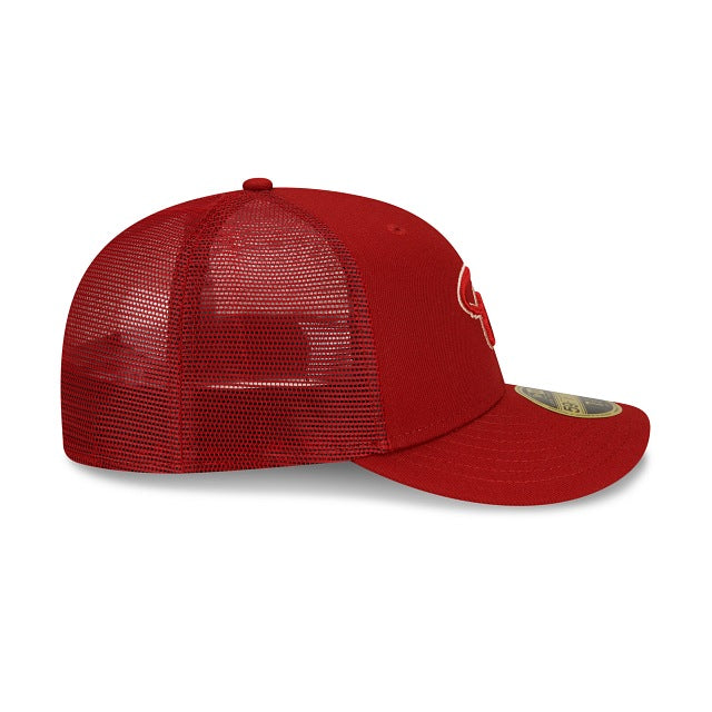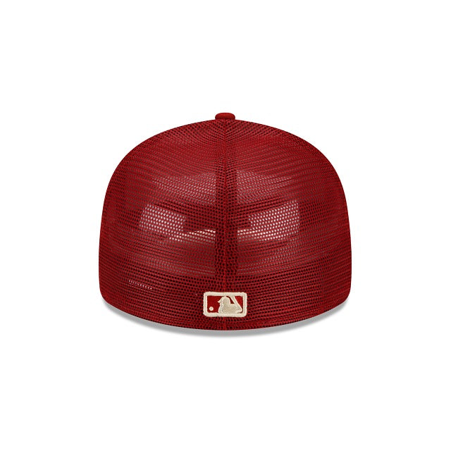 The Arizona Diamondbacks 2023 Batting Practice Low Profile 59FIFTY Fitted Cap features an embroidered Diamondbacks logo at the front panels with a matching MLB Batterman logo at the rear and a gray undervisor.