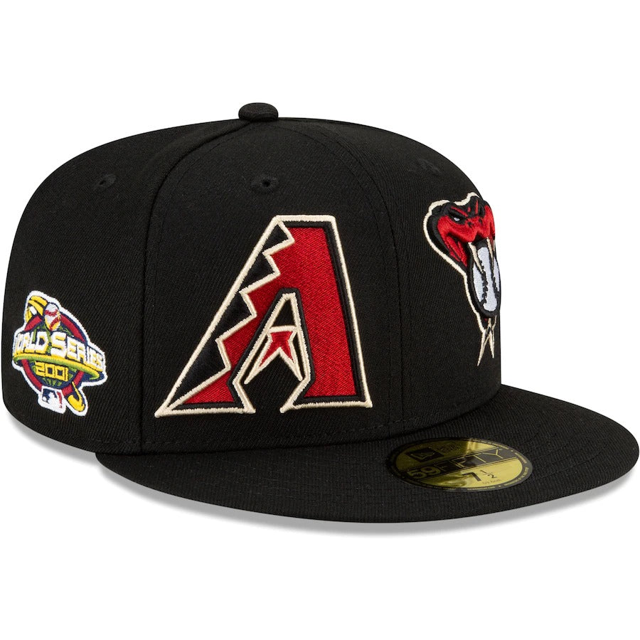 Show off Arizona Diamondbacks history from all sides with this Patch Pride 59FIFTY hat by New Era. Its eye-catching design features Arizona Diamondbacks graphics through the years on every panel. The flat bill also keeps you shaded, while the fitted construction provides a perfect fit.