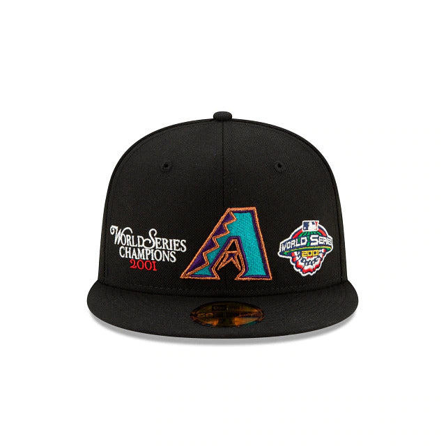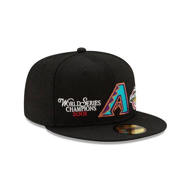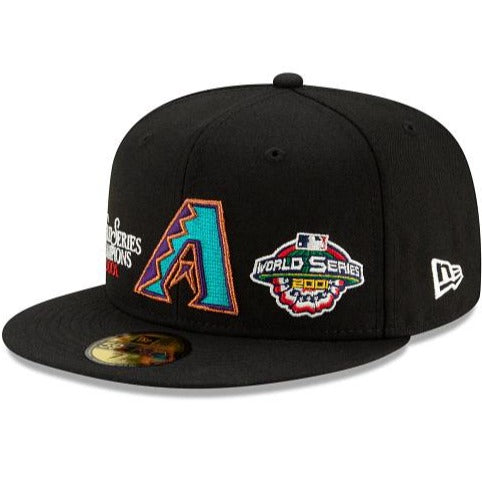 Relive some of baseball's most exciting moments with the Arizona Diamondbacks Champion 59FIFTY Fitted Cap featuring an embroidered teams logo, complimented by a World Series Champions script and World Series patch embroidered at the front panels. Additional details include a MLB Batterman logo at the rear and a gray undervisor.