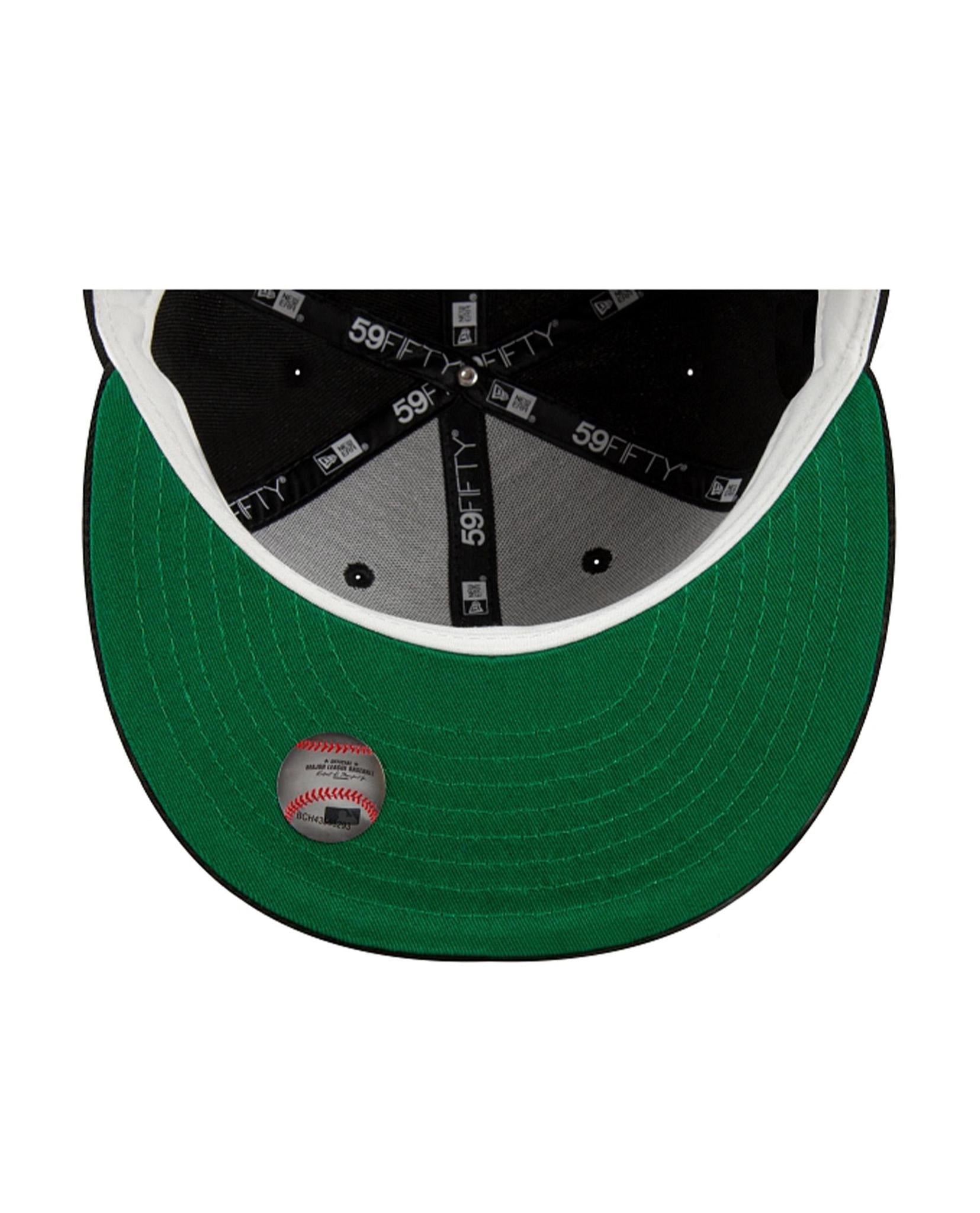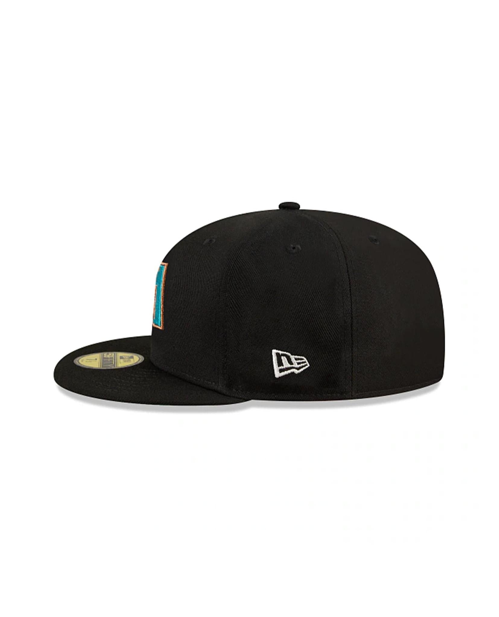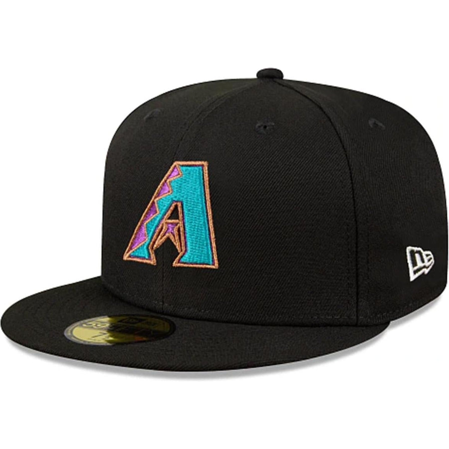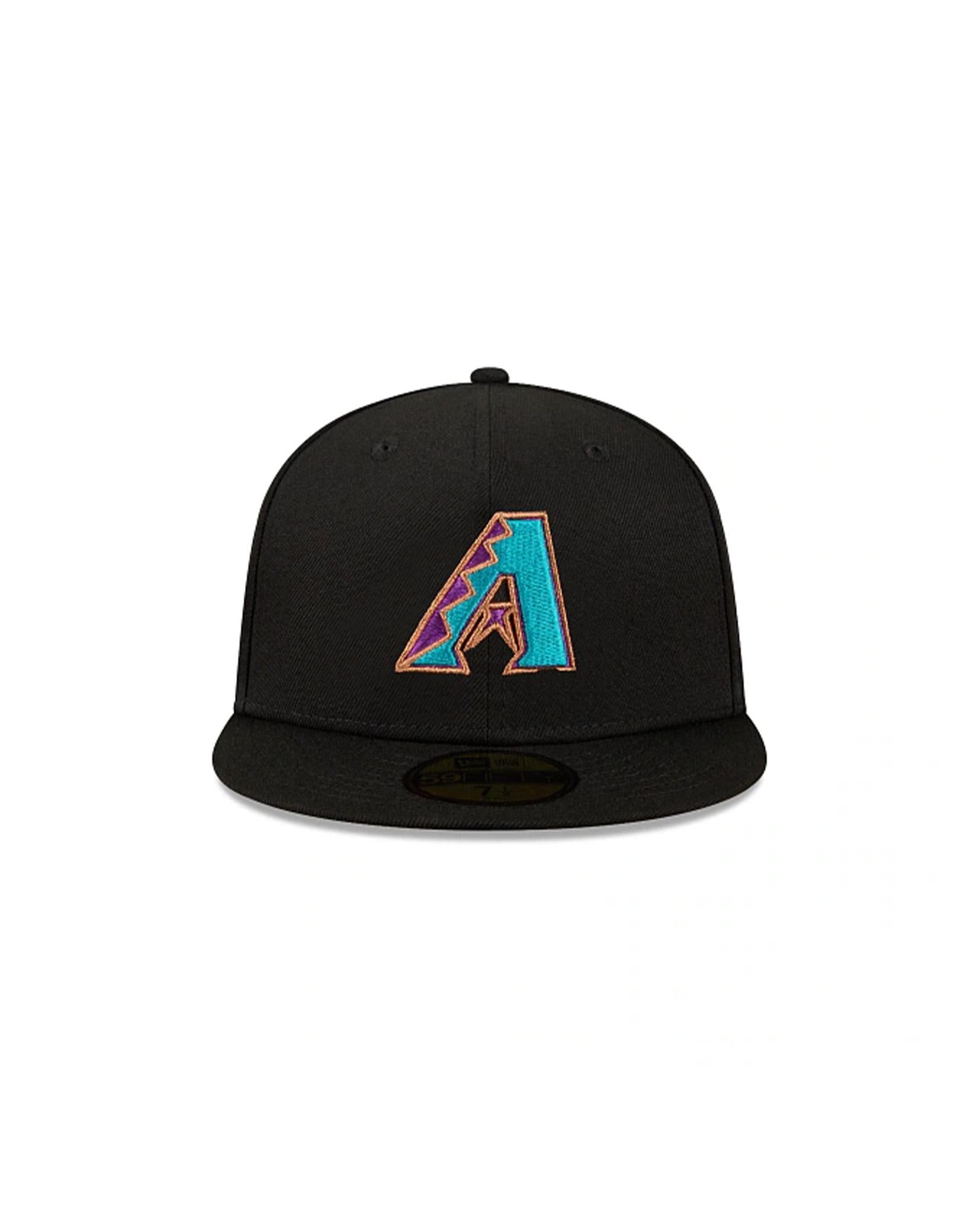 This Arizona Diamondbacks 59FIFTY fitted hat was released by Stashed SF. The fitted has a black six panel structured high crown, embroidered eyelets, fabric squatchee button and flat brim. The fitted cap also has a green bottom undervisor with a white sweatband. The front panel features the Arizona Diamondbacks metallic logo embroidery with a matching 20th Anniversary World Champions side patch on the right-wear side. The left-wear side of the fitted displays the New Era logo and the official MLB Batterman embroidery on the rear-crown.