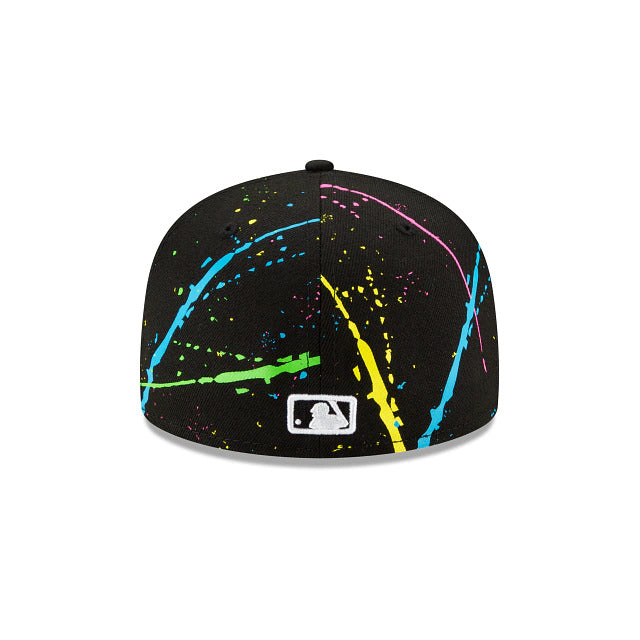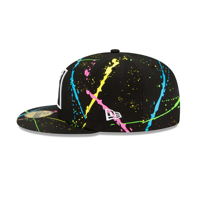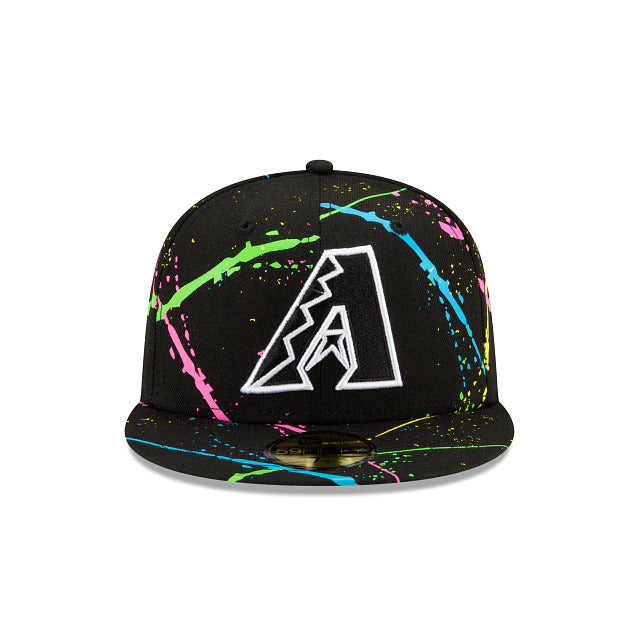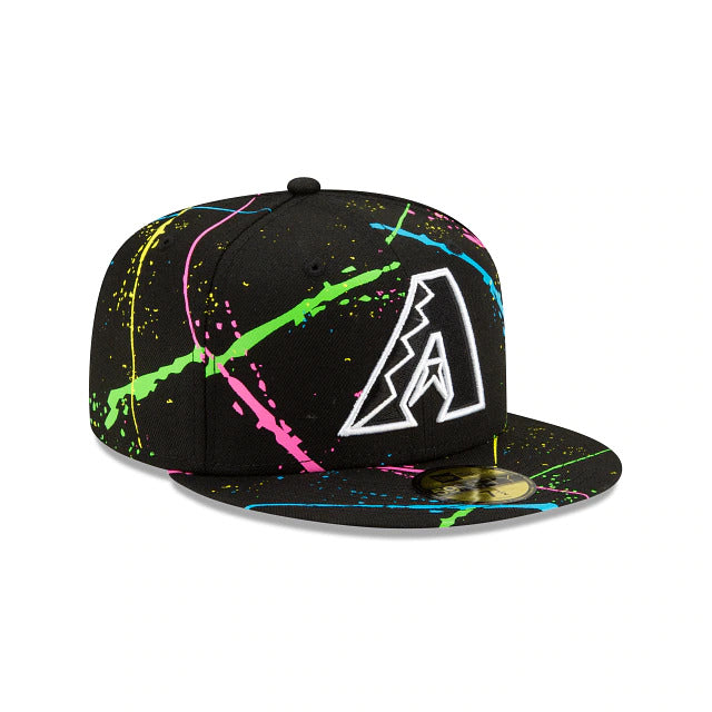 Light up the night with the Arizona Diamondbacks Streakpop 59FIFTY Fitted Cap featuring an embroidered team logo at the front panels with a neon splatter detailing throughout the crown and a MLB Batterman logo at the rear. Additional details include a gray undervisor.
