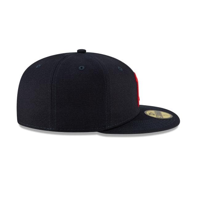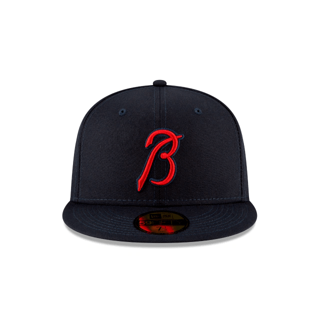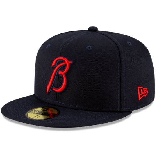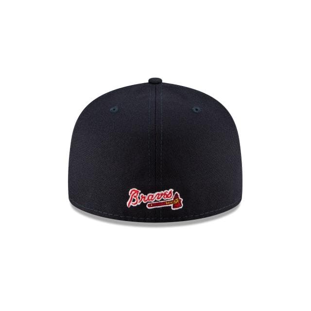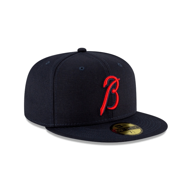 Make a new mark with the MLB Ligature Collection. The Atlanta Braves Ligature 59FIFTY Fitted Cap features a team color fabrication with a unique Braves mark inspired by their official wordmark and font embroidered at the front panels, a matching New Era flag at the left-wear side and their official wordmark at the rear.