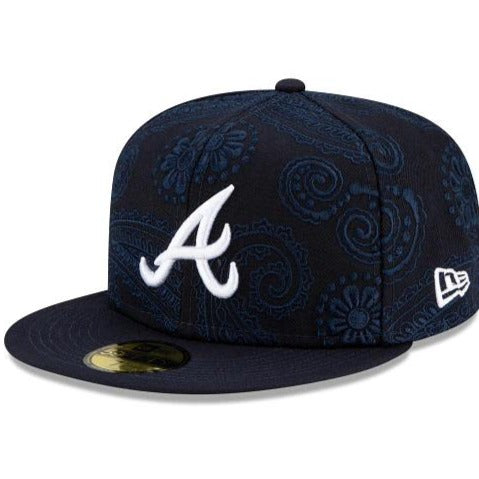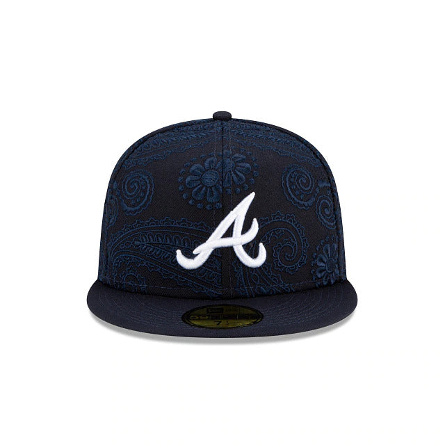 Enter the vortex with the Atlanta Braves Swirl 59FIFTY Fitted Cap featuring a tonal paisley embroidery throughout the crown with the teams logo embroidered at the front panels with a MLB Batterman logo at the rear and a gray undervisor.