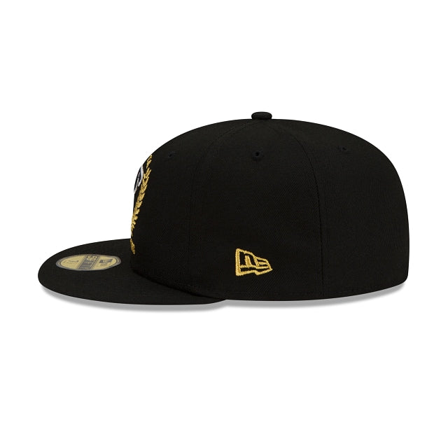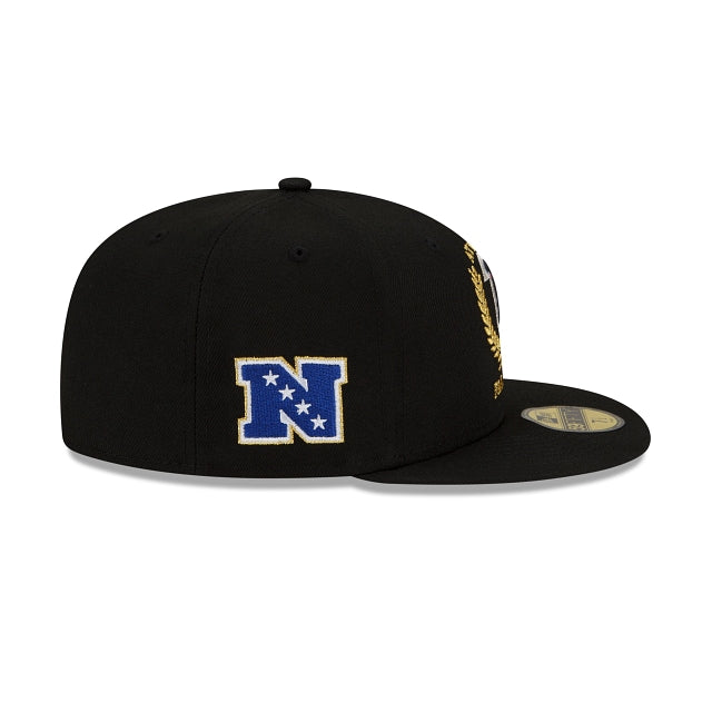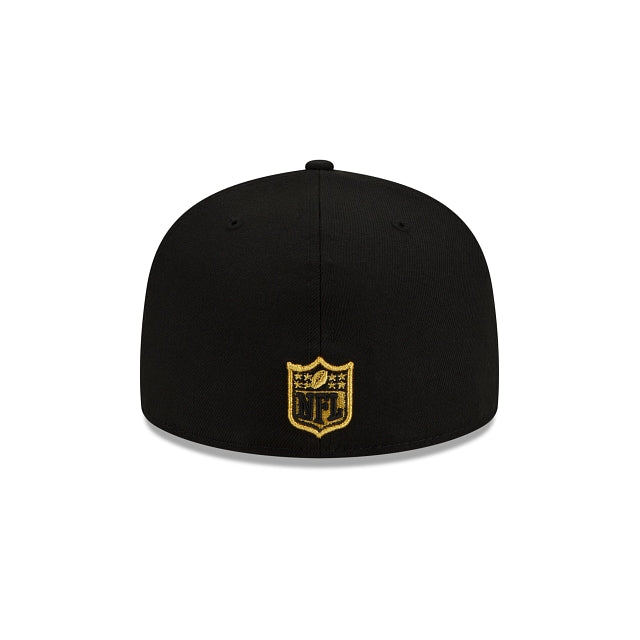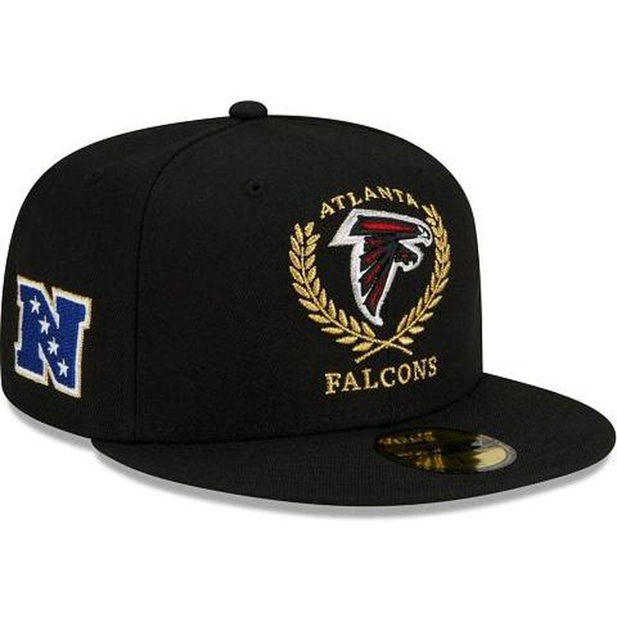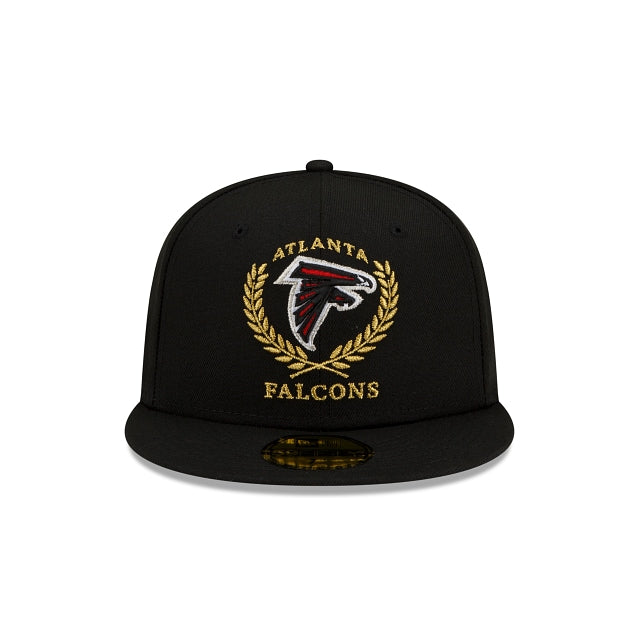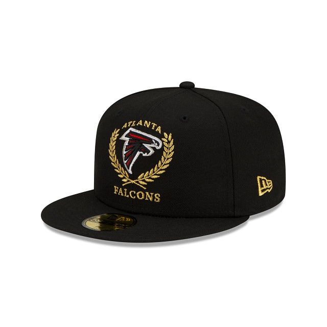 The Atlanta Falcons Gold Classic 59FIFTY Fitted Cap features an embroidered Falcons insignia at the front panels with a league specific patch at the right-wear side and the NFL Shield at the rear.