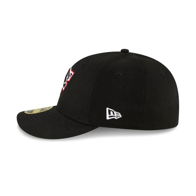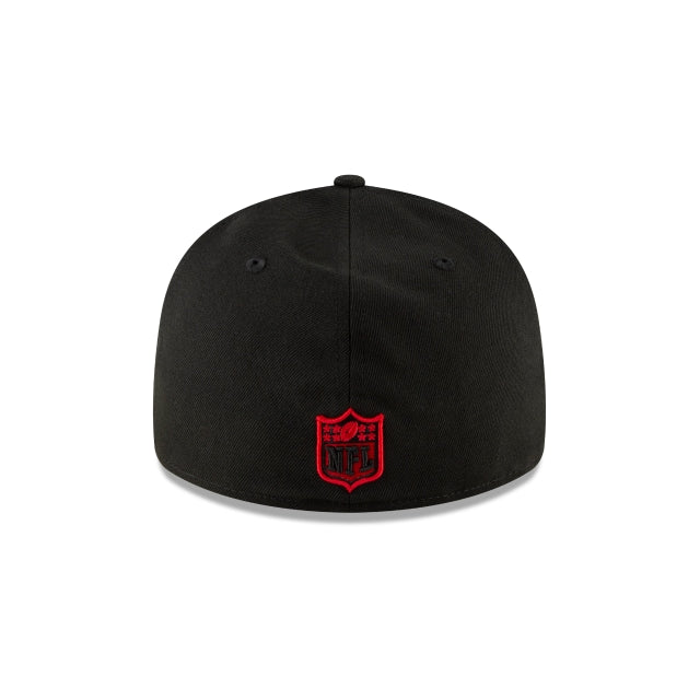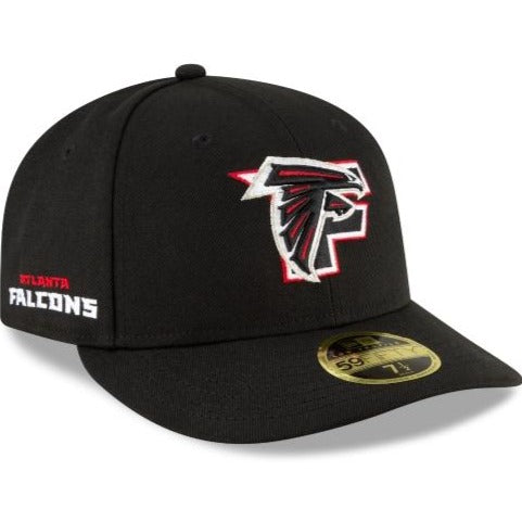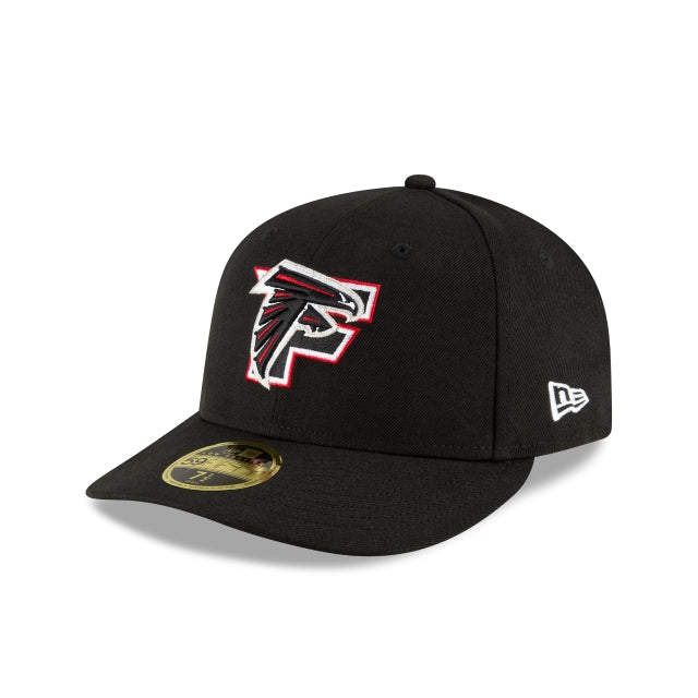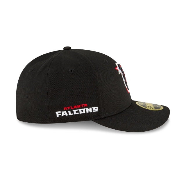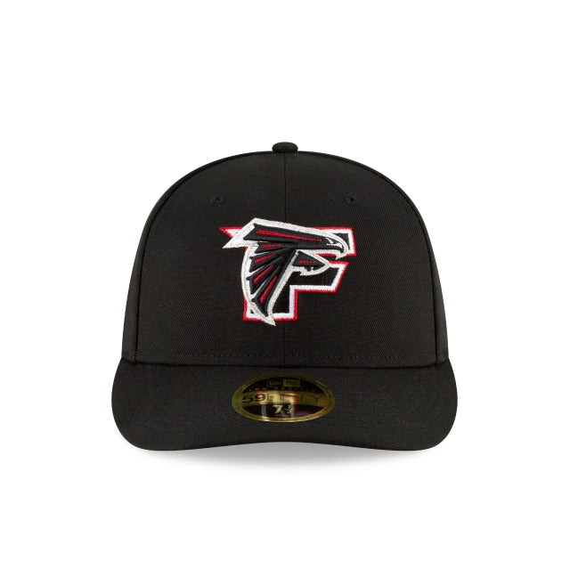 The Atlanta Falcons Logo Mix Low Profile 59FIFTY Fitted Cap features a blend of Falcons logos embroidered at the front panels with a team wordmark at the right-wear side and a team color NFL Shield at the rear. The undervisor of this cap matches the cap color.