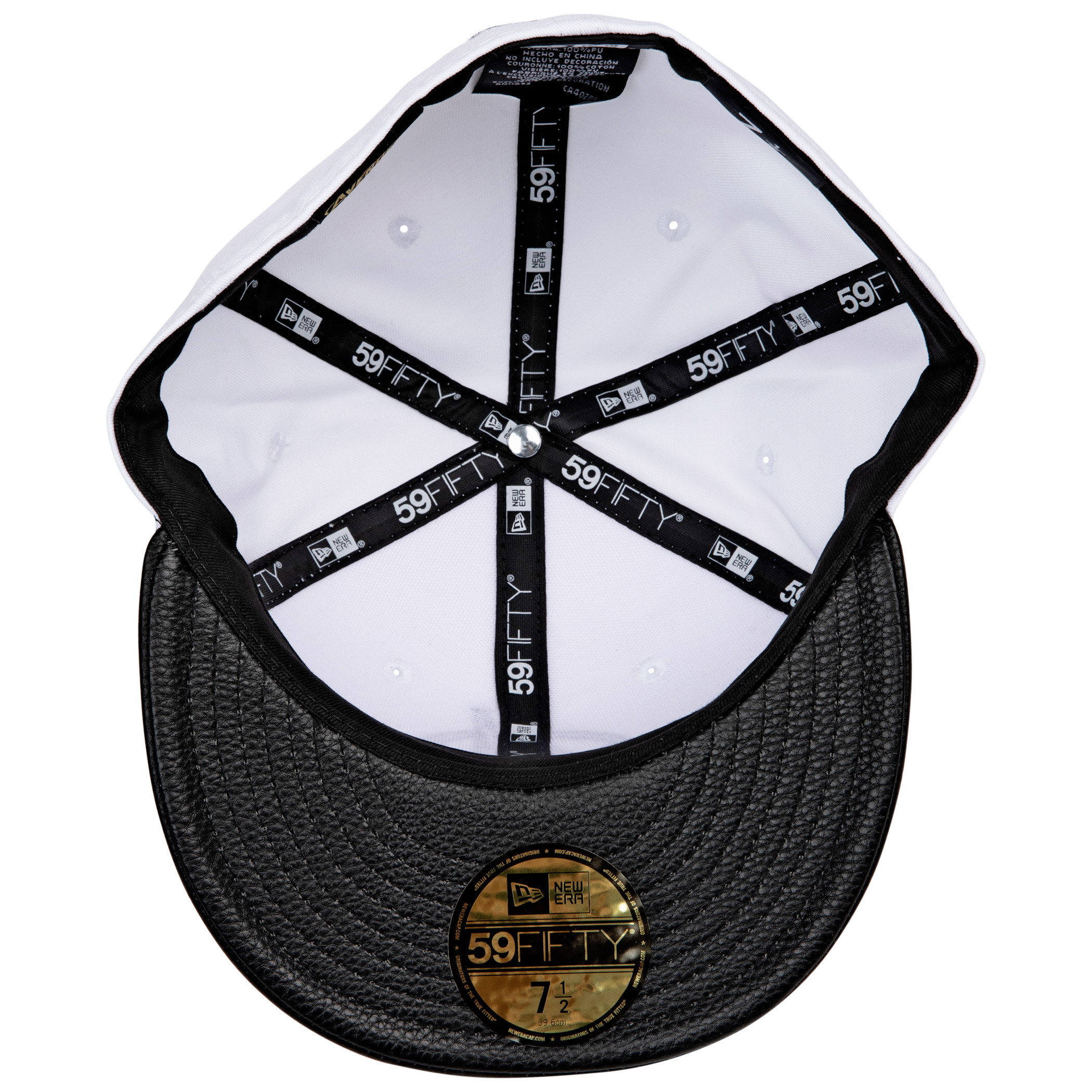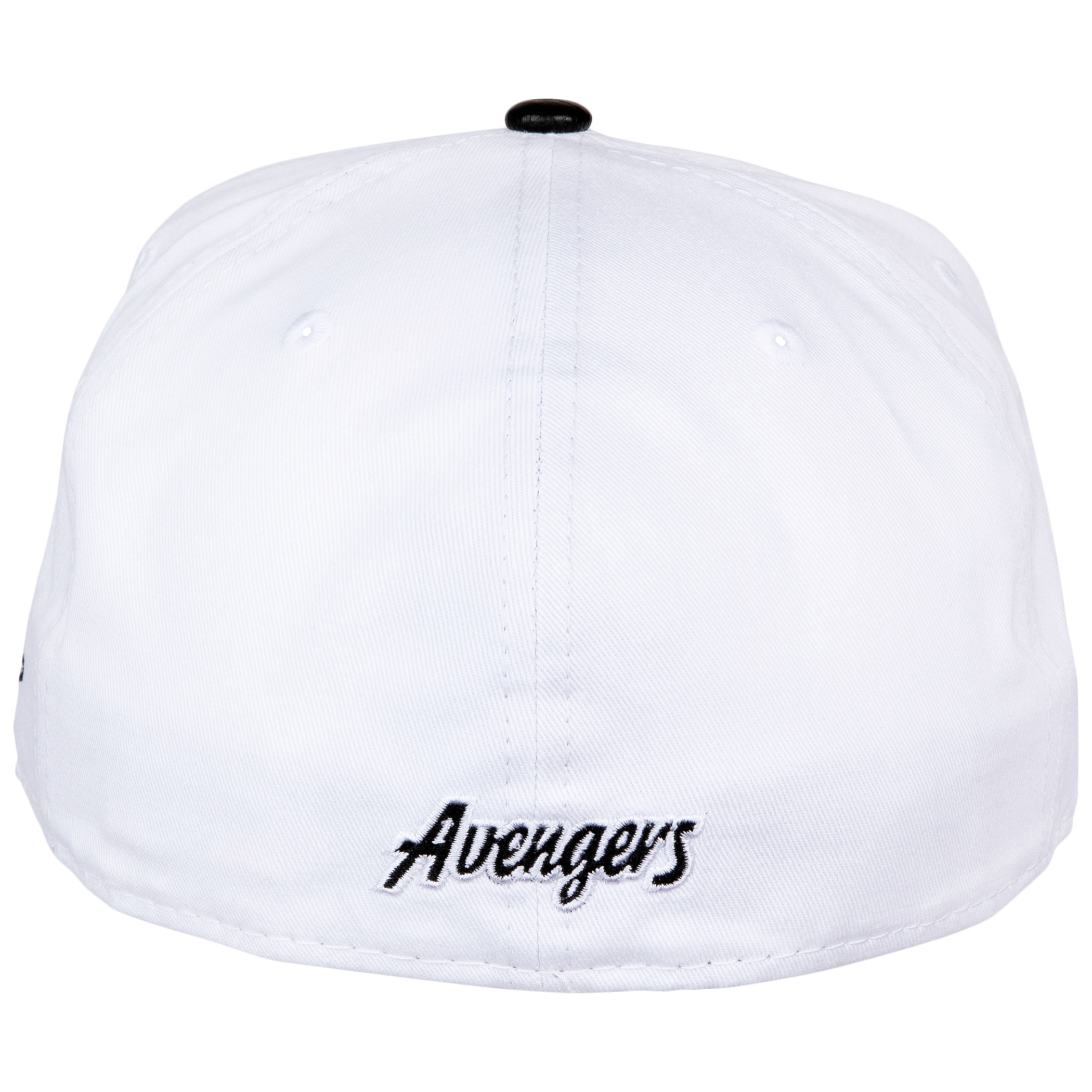 Do more with less like your favorite group of superheroes and make it look good in this officially licensed Avengers Minimalist Symbol w/Pebbled Brim New Era 59Fifty Fitted Hat. Made with an extra soft feel cotton crown and faux pebbled leather brim this stylish black and white 59Fifty Fitted Hat from New Era features an exclusive Avengers Minimalist Symbol on the front and The Avengers text logo on the back.All the dependable characteristics of a high-quality New Era Hat:The New Era logo resting on the hat s right side.The stitched taping crisscrossing the hat s interior.The official New Era tag also inside the hat!This fitted 59Fifty cap is available in specific sizes for specific head shapes.The Avengers logo on the back.