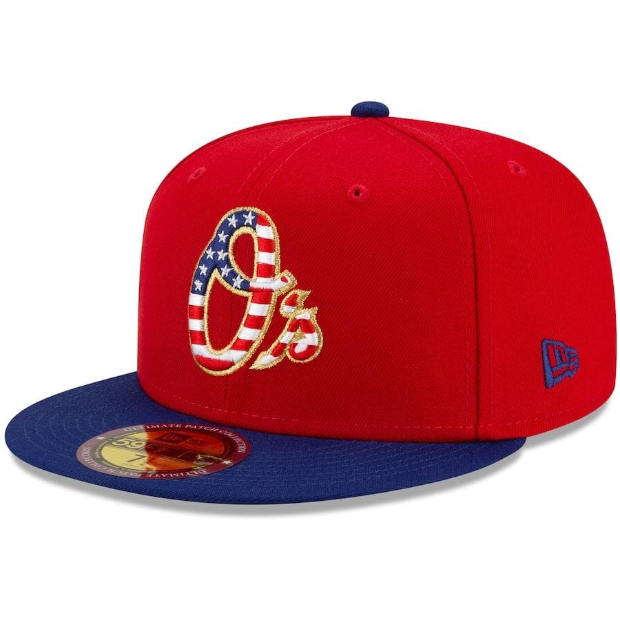 Take a patriotic approach to Baltimore Orioles fandom with this Americana Patch 59FIFTY hat. This New Era cap features a fitted design and flag-themed team logo on the front. Stay shaded and in spirited Baltimore Orioles style with this striking hat.