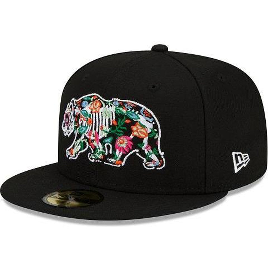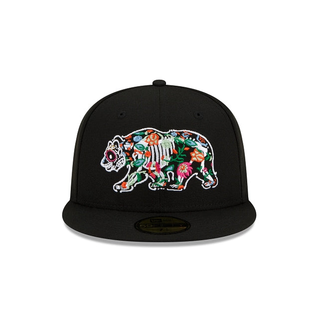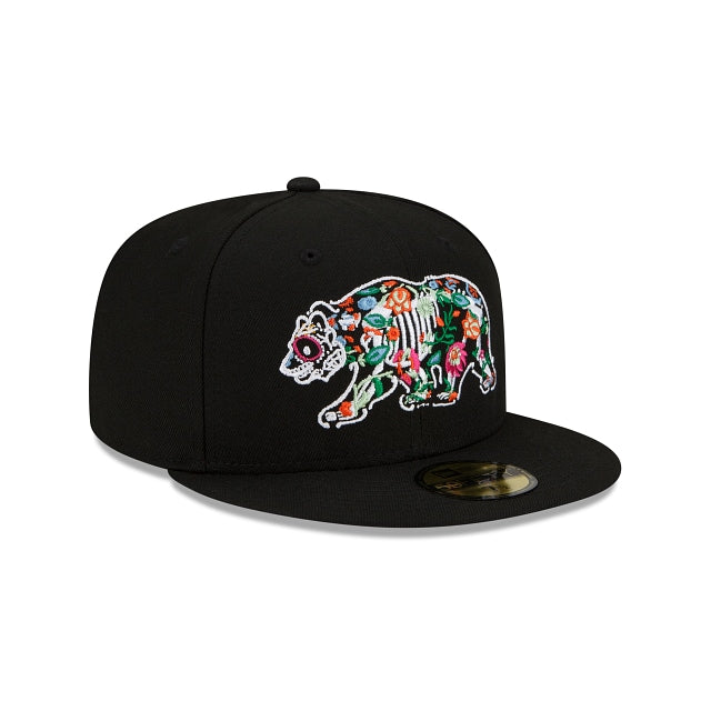 Celebrate the Dia de Los Muertos with the Bear Black 59FIFTY Fitted Cap featuring an embroidered bear at the front panels, matching New Era flag at the left-wear side and a colorful undervisor.