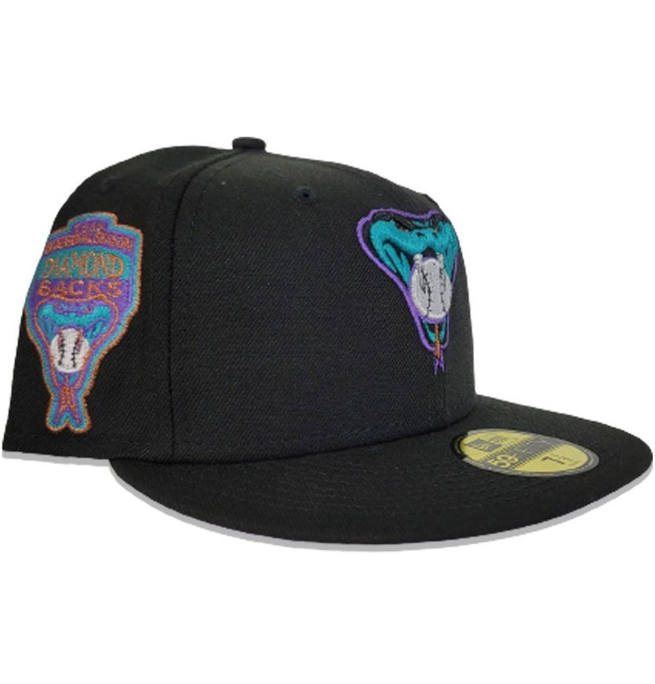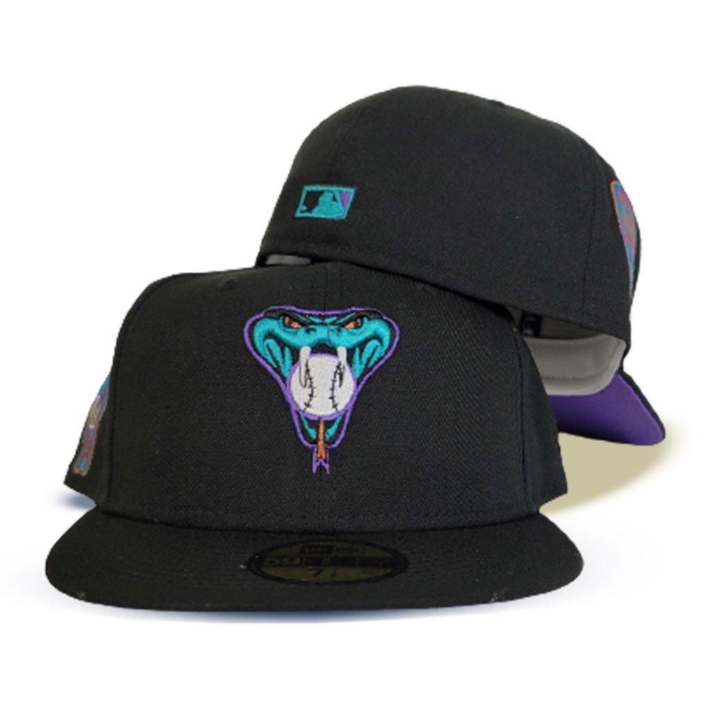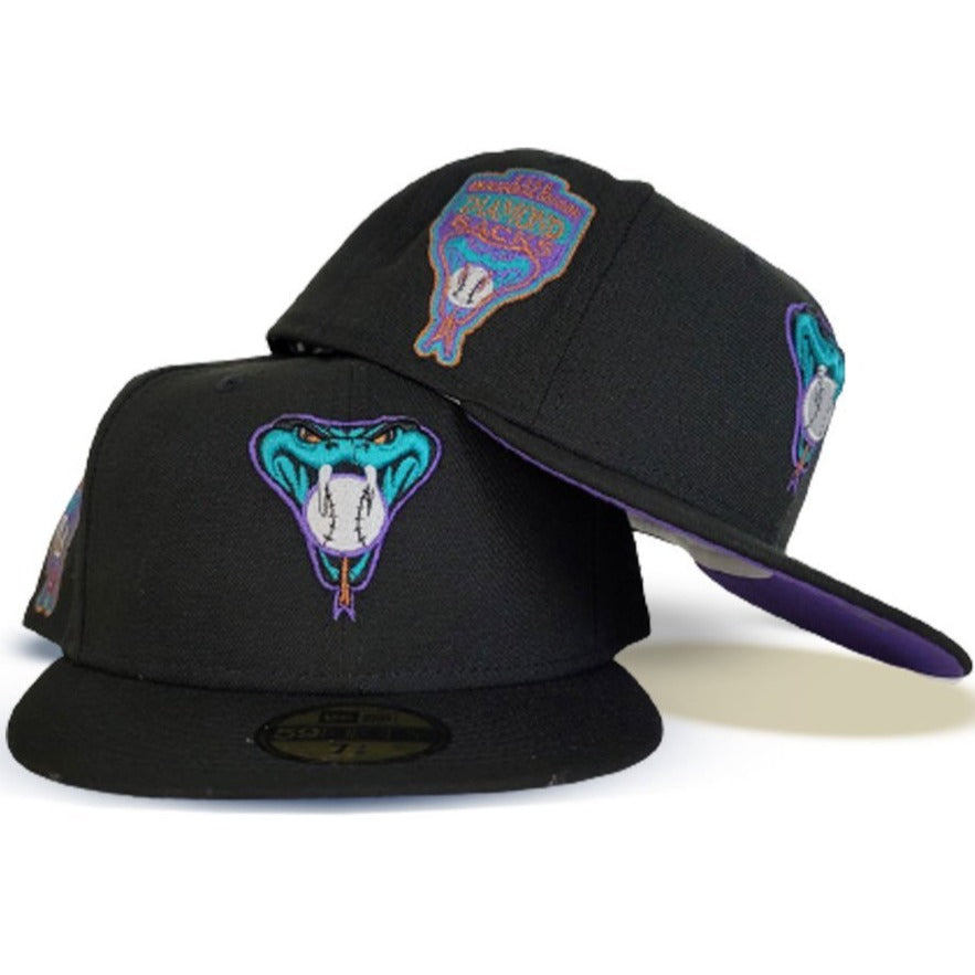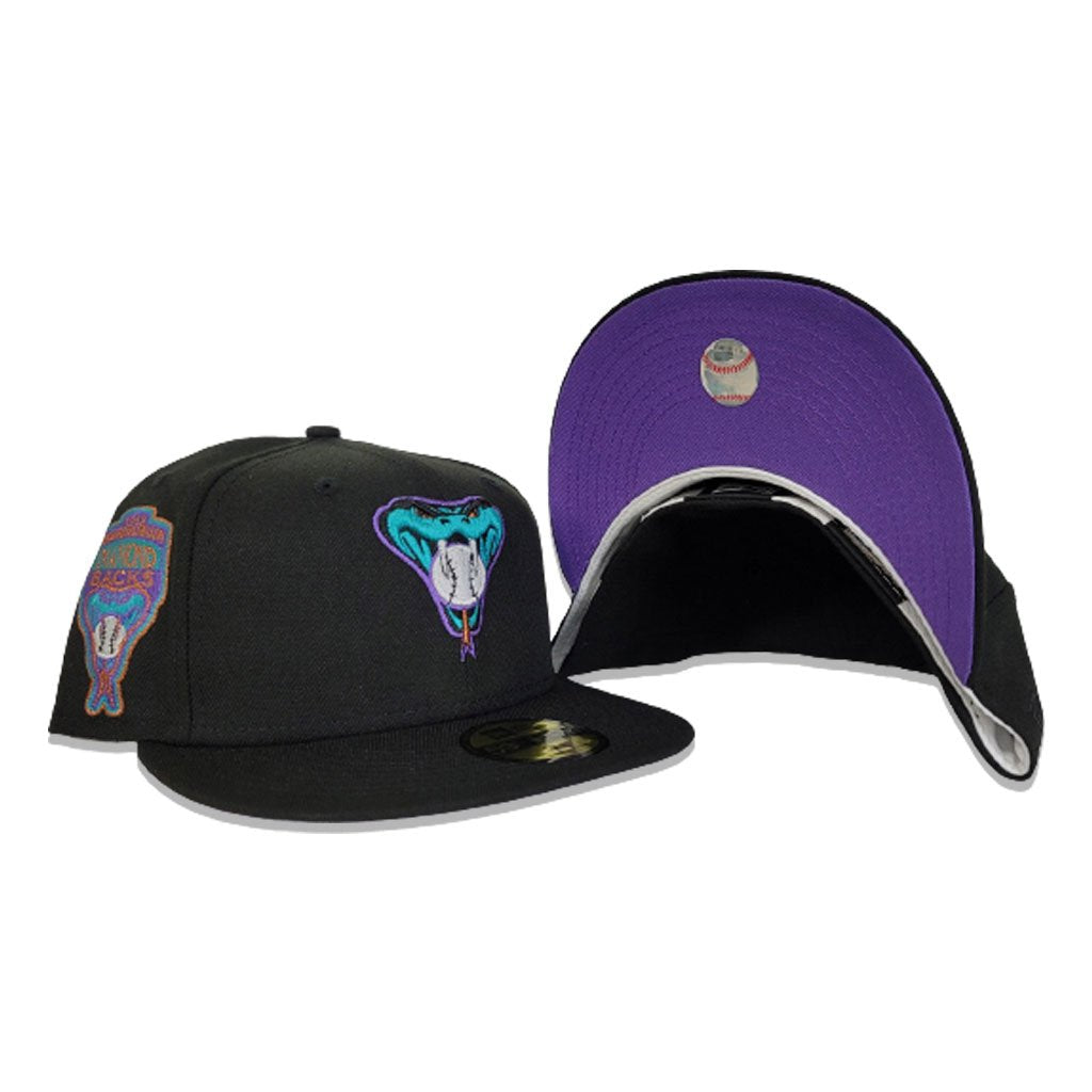 Celebrate the Arizona Diamondbacks 1998 Inaugural Season side patch with this custom-fitted from Exclusive fitted! A Black, purple undervisor is a serious game changer. Even in a subtle place such as the undervisor, it’s hard to miss the detailing on the bubbly-colored brim. Paired with the 1998 Inaugural Season side logo, this is a D-back hat for the ages. Bring a little pop into your life with our “Purple Bottom” fitted. The always classic interlocking Arizona Inaugural Season treatment with this clean entry from Exclusive Fitted.