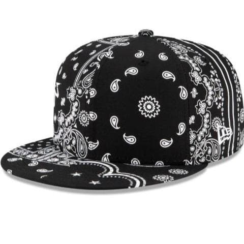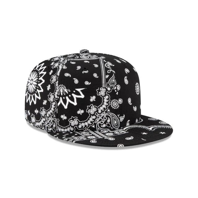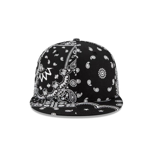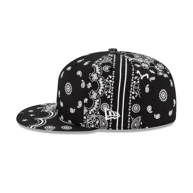 The Bandana Pack Black 59FIFTY Fitted features an an allover bandana inspired fabrication with a black under visor and an embroidered New Era logo at the right wear side.