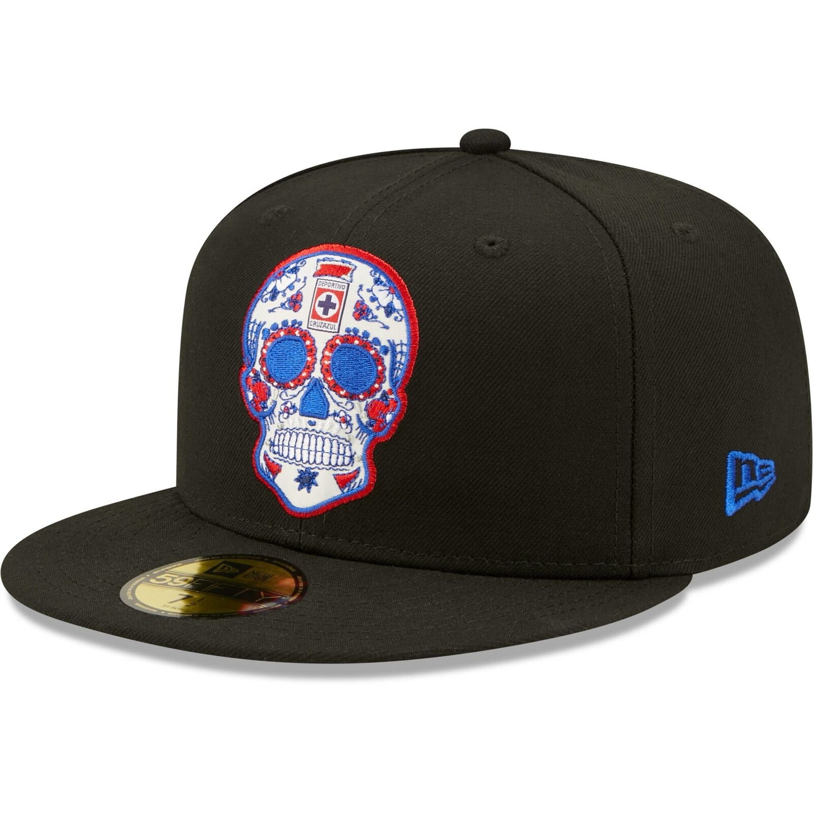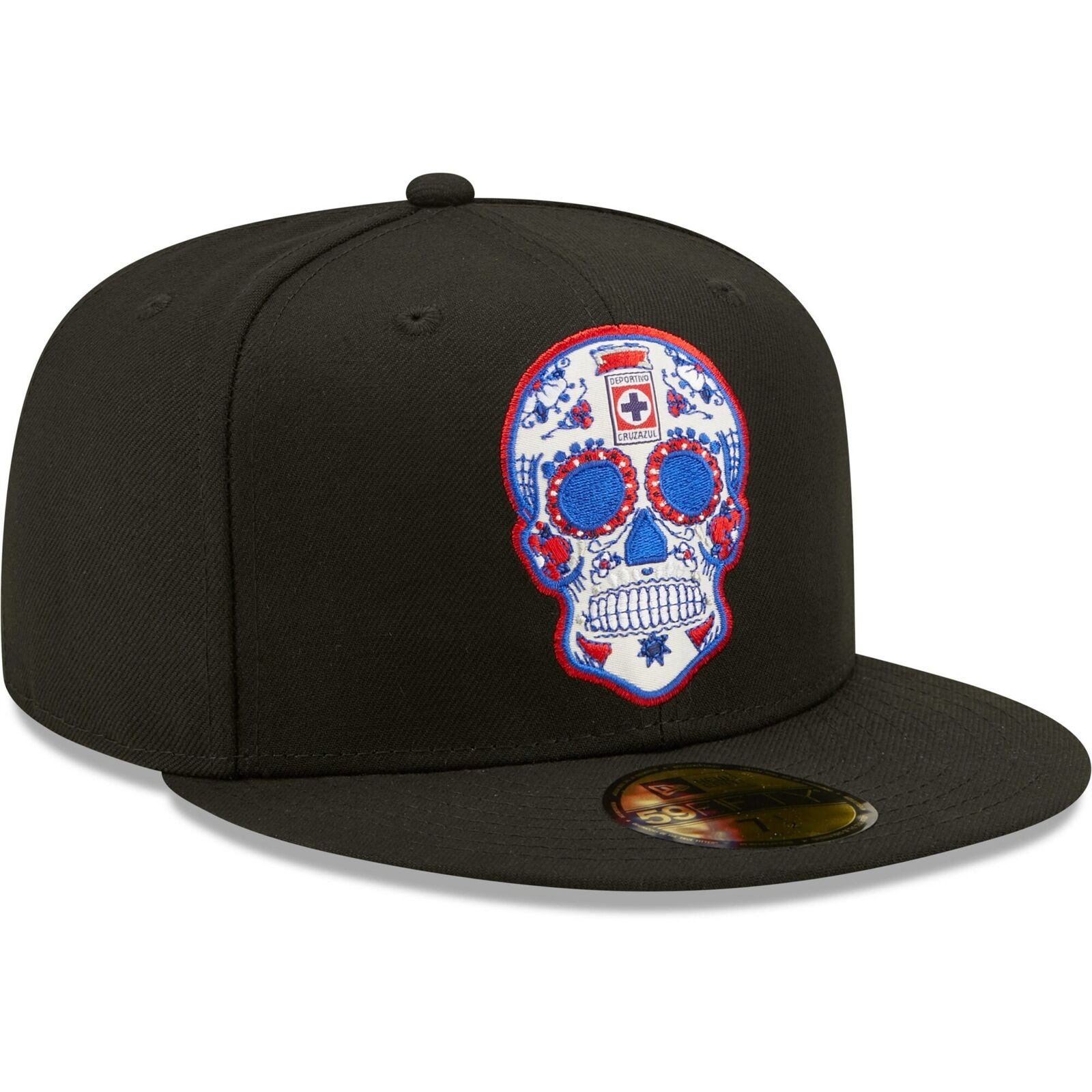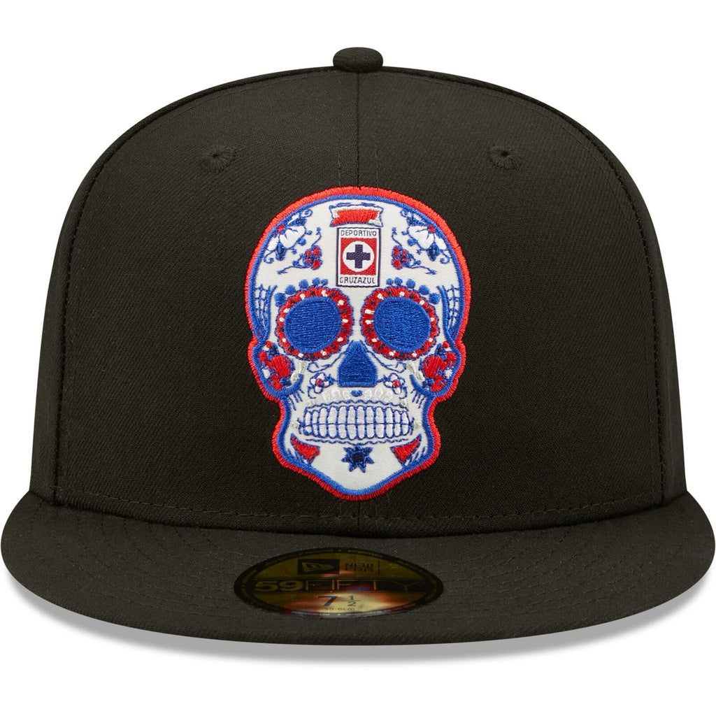 Pay tribute to Day of the Dead with this Cruz Azul 59FIFTY hat from New Era. It features a sugar skull in raised embroidery designed to match the Cruz Azul colors and the club name embroidered on the back. Additionally, the fitted construction offers up a perfect fit for lasting comfort.