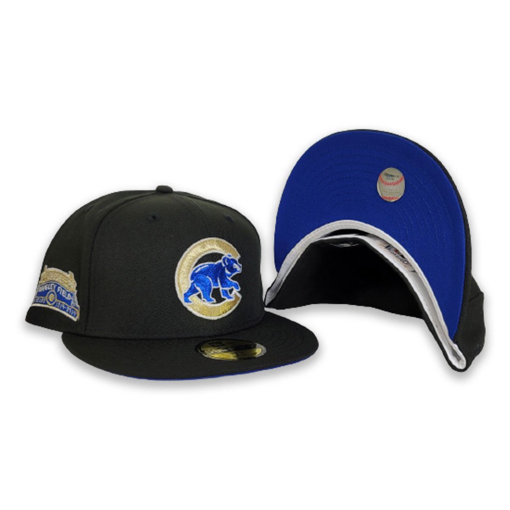 Celebrate the Chicago Cubs Wrigley Field side patch with this custom-fitted from Exclusive fitted! A Black, with royal undervisor is a serious game changer. Even in a subtle place such as the undervisor, it’s hard to miss the detailing on the bubbly-colored brim. Paired with the Wrigley Field side logo, this Cubs fitted bring a little pop into your life with our “Royal Bottom” fitted. The always classic interlocking Cubs Wrigley Field treatment with this clean entry from Exclusive Fitted.