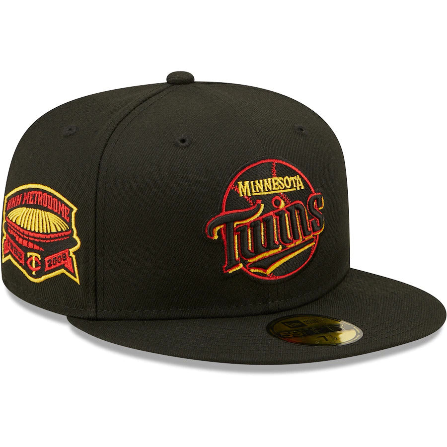 Wear a piece of Minnesota Twins history with this Hubert H. Humphrey Metrodome Gold Undervisor 59FIFTY hat. With bold contrasting embroidery dedicated to the Minnesota Twins that pops against the solid black crown, this New Era hat is a true showcase of team pride. Best of all, its solid, fitted construction ensures it's always game day ready.