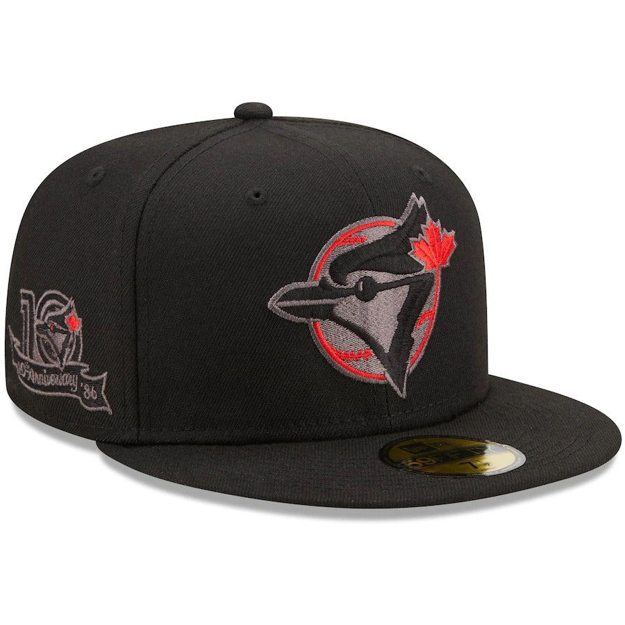 Showcase the history of the Toronto Blue Jays with this 10th Anniversary Patch Blackout Pop Undervisor 59FIFTY Fitted Hat from New Era. It features a sweet Toronto Blue Jays logo in raised embroidery on the front and a patch on the side commemorating a significant franchise moment. This sweet Toronto Blue Jays hat is certain to be a favorite in your collection.