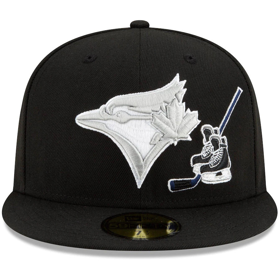 Cheer on the Toronto Blue Jays in hometown fashion with this City Sky Blue Undervisor 59FIFTY hat. This piece of New Era headwear features the team's logo and local landmarks on the front and back. The contrast-color undervisor and fitted design give this Toronto Blue Jays cap some bold style.
