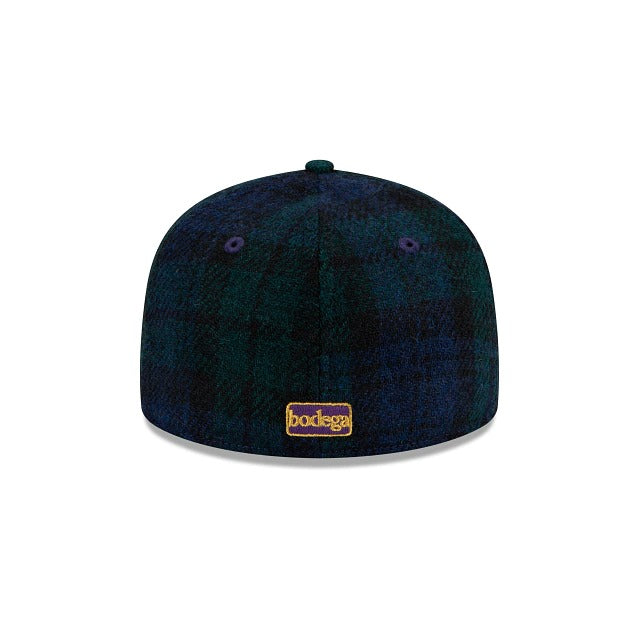 The Bodega x Boston Red Sox 59FIFTY Fitted Cap features an embroidered Red Sox logo at the front panels, a Harris Tweed patch at the right-wear side and a Bodega insignia embroidered at the rear. Additional detials include a maroon undervisor with an embroidered Bodega insignia and a tan sweatband.