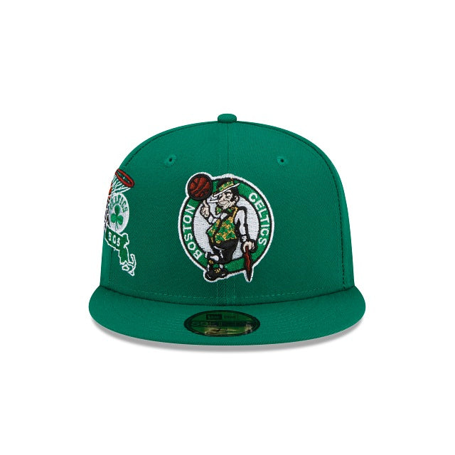 Get the foam finger ready. The Boston Celtics Fan Out 59FIFTY Fitted Cap features an embroidered Celtics logo at the front panels, a city inspired graphic embroidered at the front right-wear side and the NBA logo embroidered at the rear.