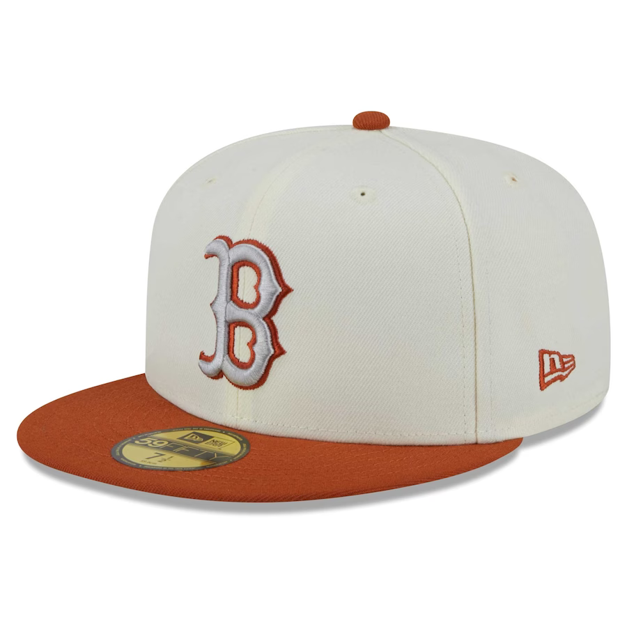 Effortlessly enhance your game day outfit with the Boston Red Sox Cream/Orange 2023 59FIFTY cap from New Era. This cap showcases striking Boston Red Sox graphics in a one-of-a-kind cream & rust orange color scheme, intricately embroidered on the crown and side. It's an ideal way to showcase your unwavering support for the team. Plus, the fitted construction guarantees a comfortable fit that lasts throughout the day.