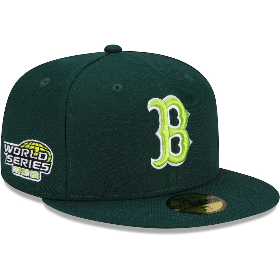 Take a unique approach to celebrating Boston Red Sox history with this 2004 World Series Color Fam 59FIFTY hat by New Era. Its bright colorway features a lime undervisor that complements the team graphics. A fitted closure also ensures this Boston Red Sox cap always has a perfect fit.