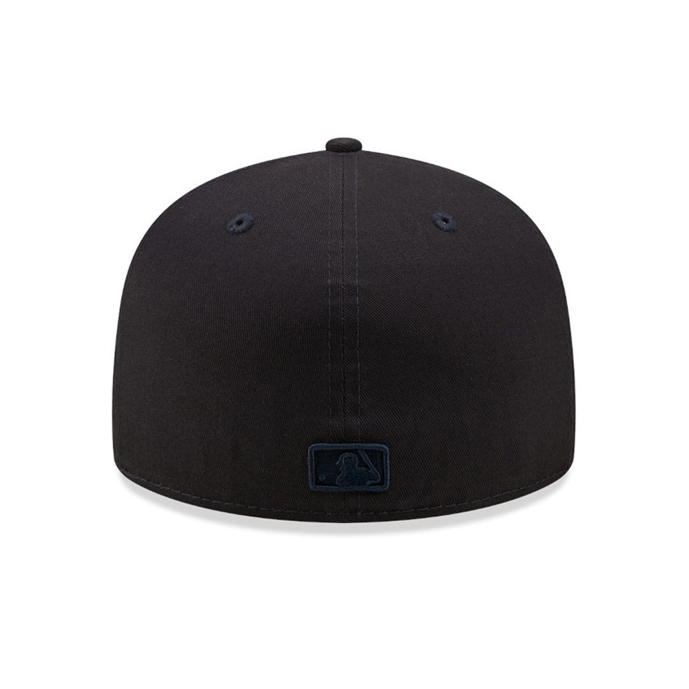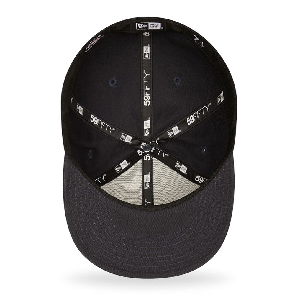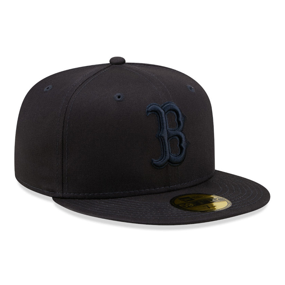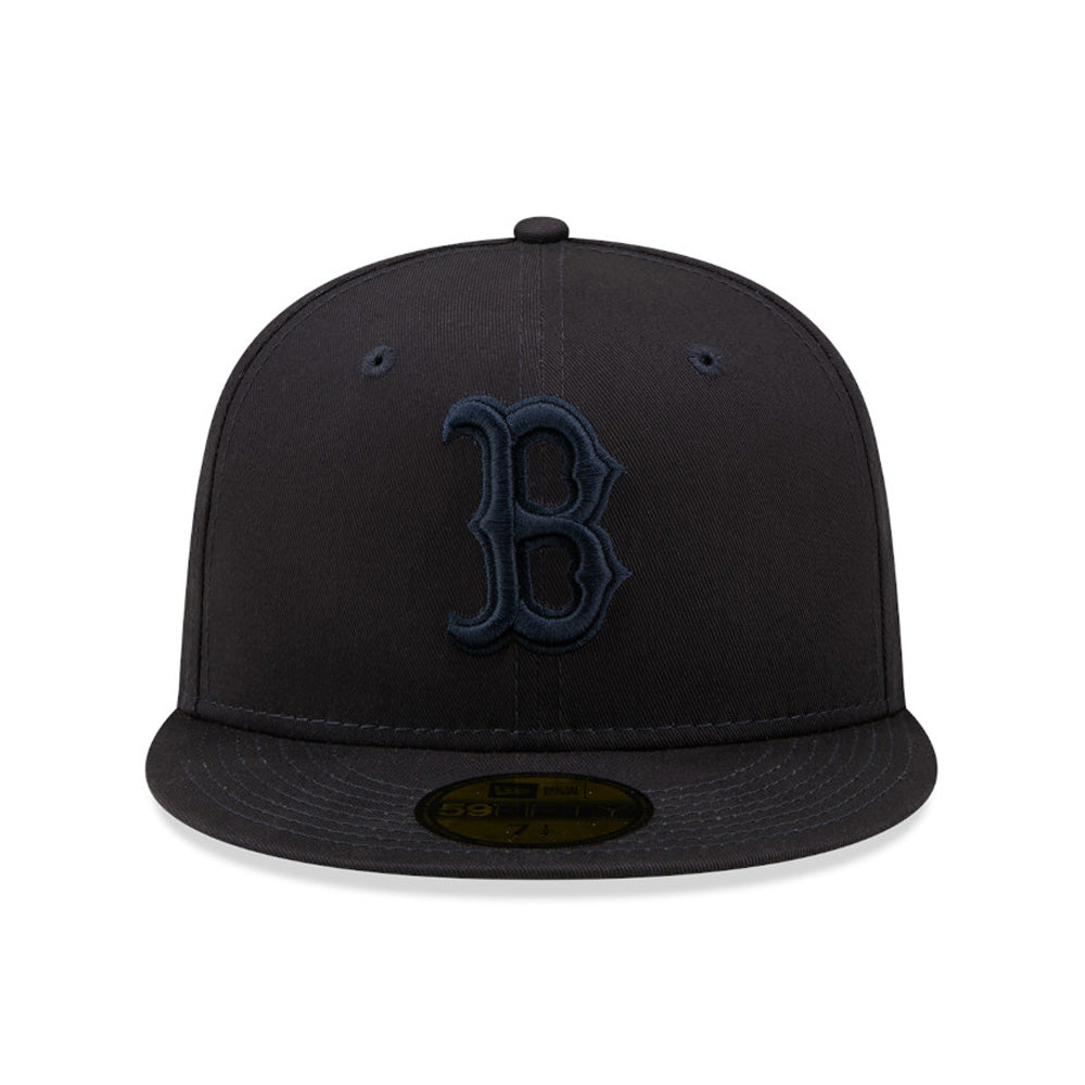 This Boston Red Sox fitted hat was released by FAM. The fitted has a navy six panel structured high crown and embroidered eyelets with a navy fabric squatchee button. The flat bill of the cap is also navy with a navy undervisor and black sweatband. The front panel features the Boston Red Sox logo embroidery. The left panel of the fitted displays the New Era logo and the official MLB Batterman logo embroidery on the rear crown.