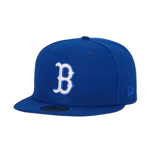 This New Era Boston Red Sox Royal Blue 2004 World Series Gray Undervisor 59FIFTY Fitted Hat has a royal blue six panel structured high crown and embroidered eyelets with a royal blue fabric squatchee button. The fitted cap has a royal blue flat bill with a gray undervisor and white sweatband. The front panel features the Boston Red Sox logo embroidery and a 2004 World Series side patch on the right panel. The left panel of the fitted displays the New Era logo and the official MLB logo embroidery on the rear crown.