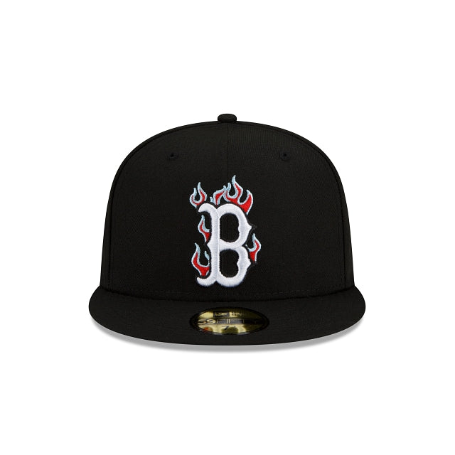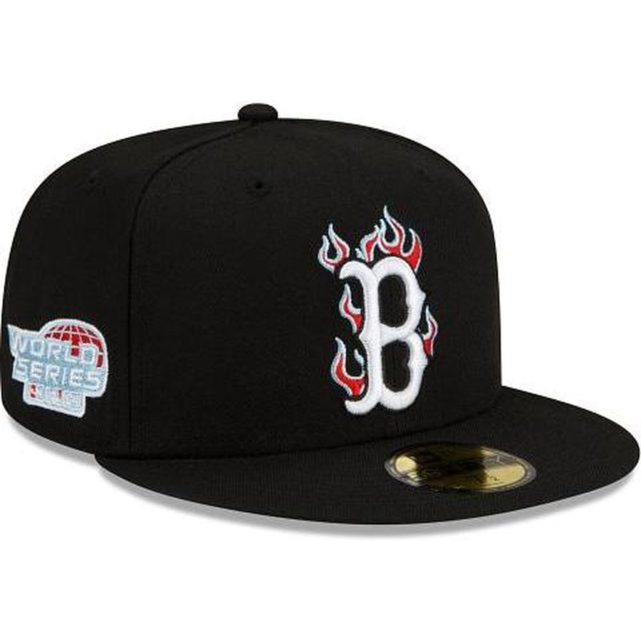 Light it up with the Boston Red Sox Team Fire 59FIFTY Fitted Cap featuring an embroidered Red Sox logo with flame detailing at the front panels with a World Series patch at the right-wear side and a light-blue undervisor.