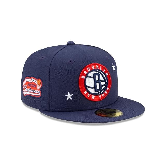 The Brooklyn Nets Americana 59FIFTY Fitted Cap features an embroidered Brooklyn Nets logo at the front panels with star embroideries throughout the crown. Additional details include a NBA Champions patch at the right-wear side, the NBA logo at the rear and a gray undervisor.