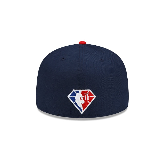 There's no limit in this city. The Brooklyn Nets City Edition 59FIFTY Fitted Cap features an embroidered Nets wordmark at the front panels, and the Official NBA 75th Anniversary logo at the rear. Additional details include a uniquely curated city inspired crown.