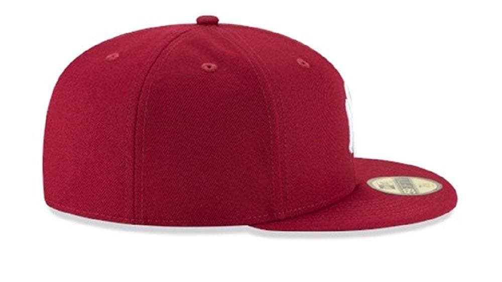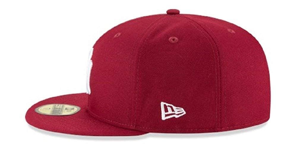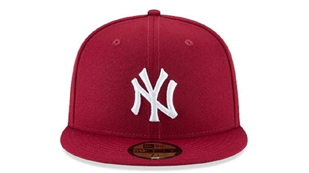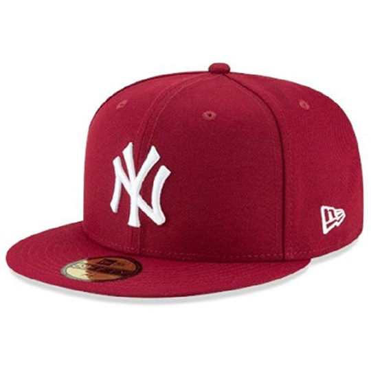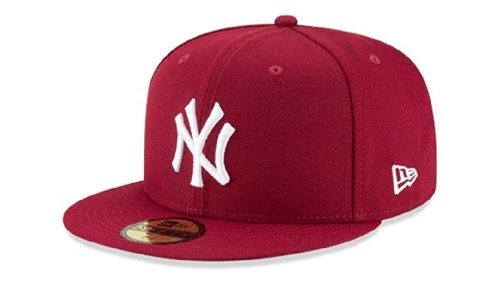 This New Era New York Yankees fitted hat has a full burgundy/cardinal red six panel structured high crown, embroidered eyelets , fabric squatchee button and flat bill. The front panel features the New York Yankees logo embroidered in white stitching.
