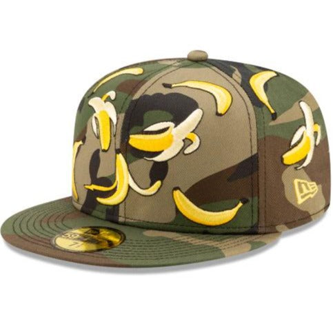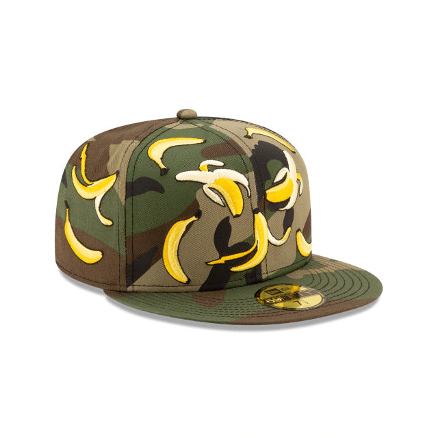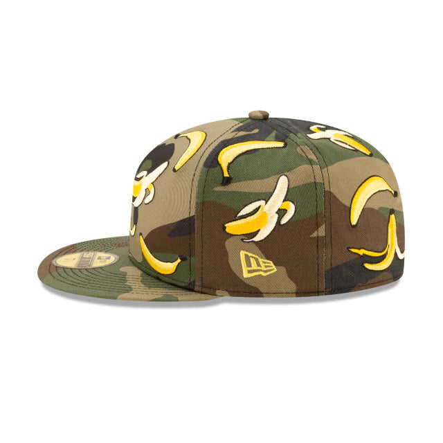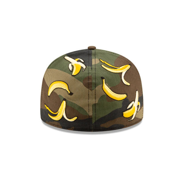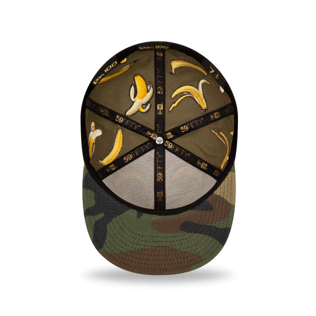 In celebration of our 100th Anniversary, we opened the vault to bring back one of our most popular designs from the past century. The Camo Banana 59FIFTY Fitted Cap features a camouflage fabrication with bananas embroidered throughout the crown. Additional details include a custom sweatband and interior taping with gold accents and our 100th Anniversary logo.