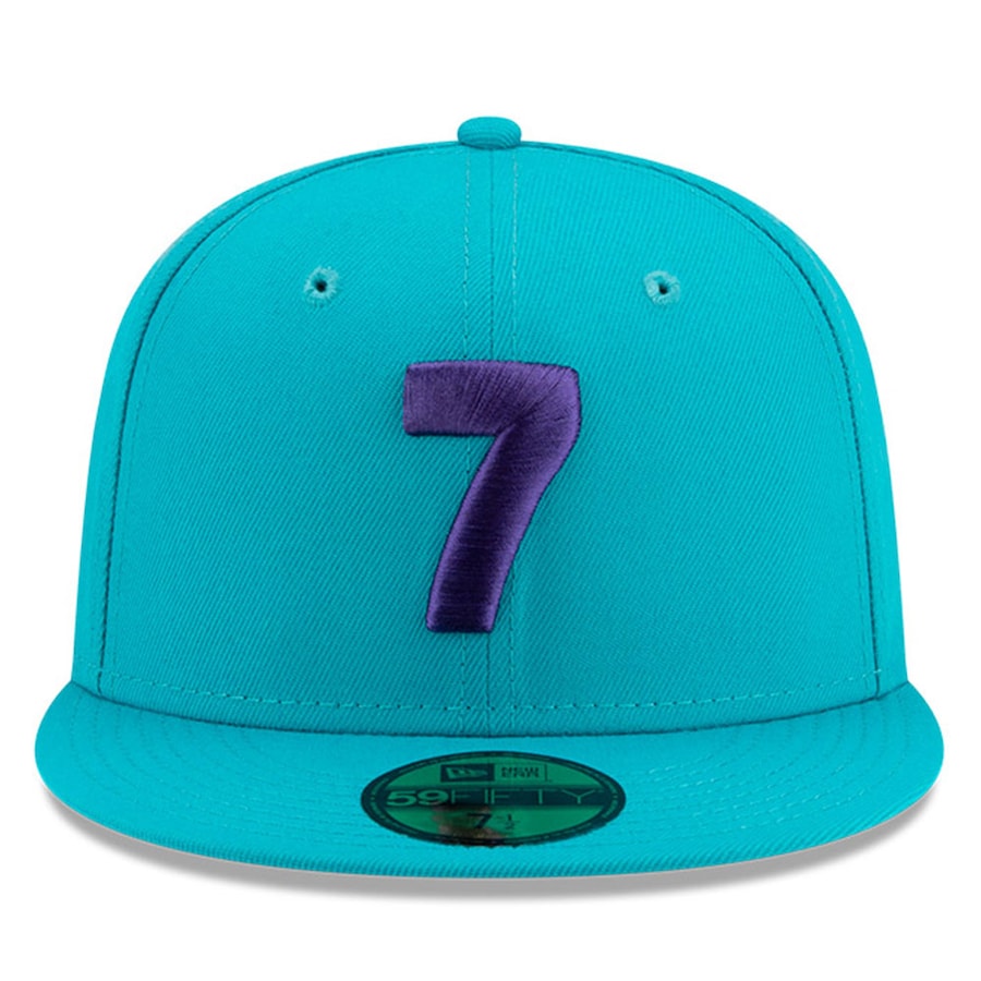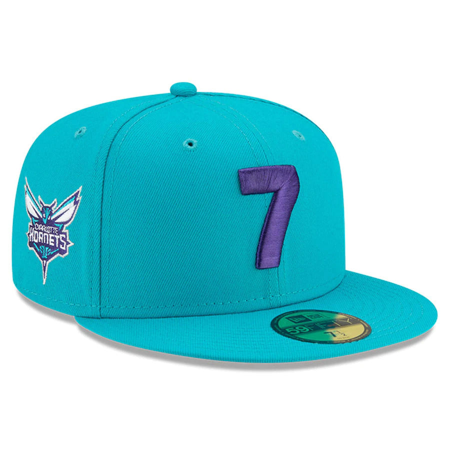 The "7" caps are back. The Charlotte Hornets X Compound "7" 59FIFTY Fitted Cap features an embroidered 7 at the front panels, with the team logo embroidered at the right-wear side and the NBA logo at the rear.