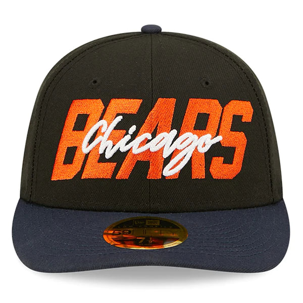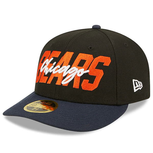 With your next pick, you should select this Chicago Bears Low Profile 59FIFTY Fitted Hat from the official 2022 NFL Draft collection. This New Era cap features an NFL shield on the side and an official team color visor. Also sporting an embroidered version of your favorite team's logo on the rear of the cap, this gear has it all and will get you pumped for the upcoming Chicago Bears season.