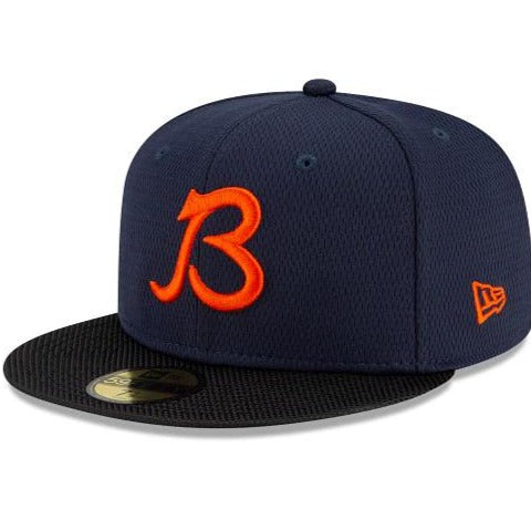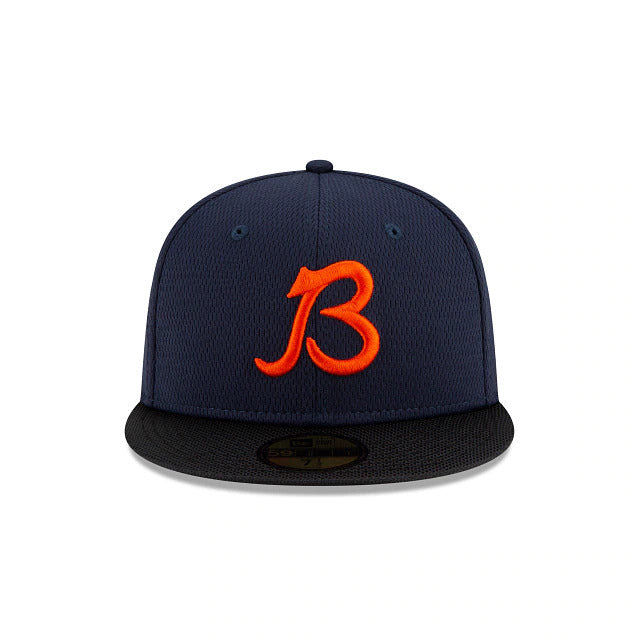 Travel in style with the Chicago Bears Official NFL Sideline Road 59FIFTY Fitted Cap featuring a unique two-tone dashmark fabrication with an embroidered team logo at the front panels. Team color accents and the Official NFL Shield at the rear complete the official cap that players, coaches and staff will wear on the sidelines during the 2021 NFL season.