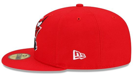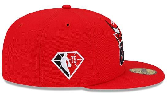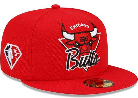 Fresh look for a fresh start. The Chicago Bulls Tip Off 59FIFTY Fitted Cap features a custom Bulls mark inspired by logos and wordmarks embroidered at the front panels with the Official NBA 75th anniversary logo embroidered at the right-wear side. Additional details include a team logo at the rear with a gray undervisor.