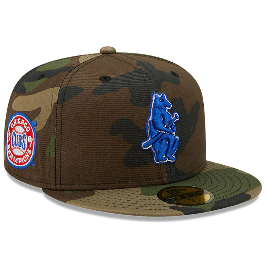 New Era Camo Chicago Cubs 1907 World Series Champions Patch Woodland Undervisor 59FIFTY Fitted Hat