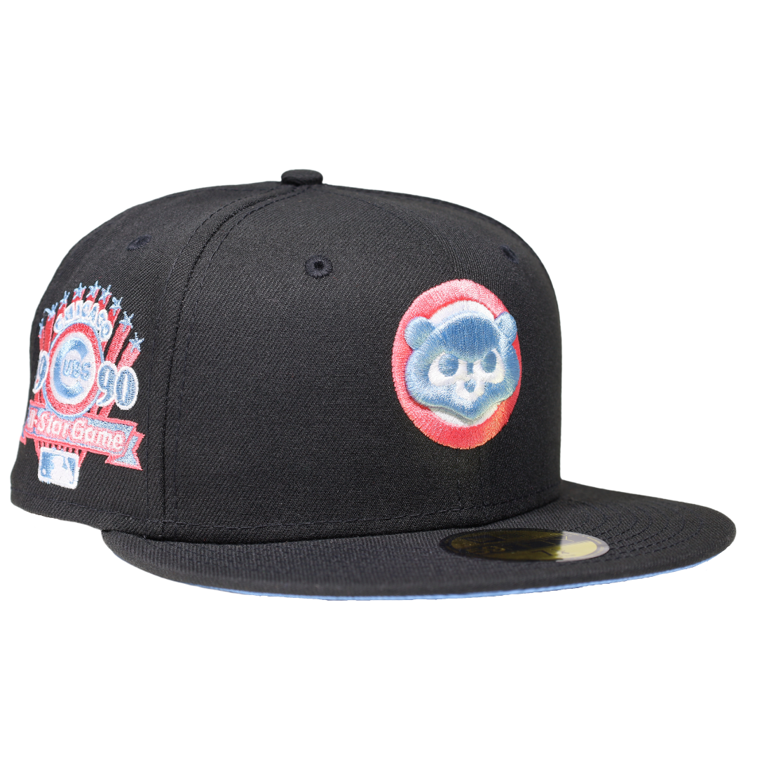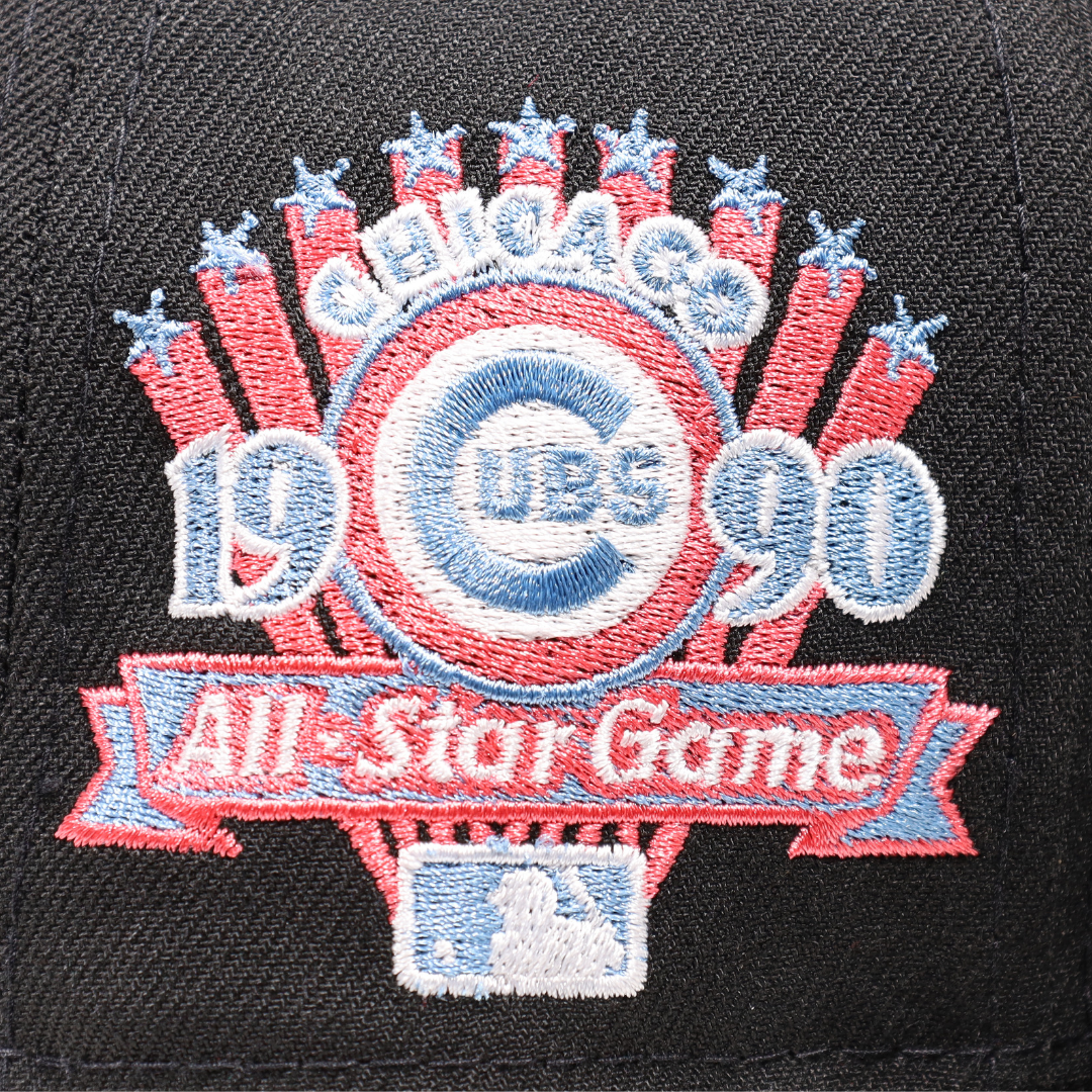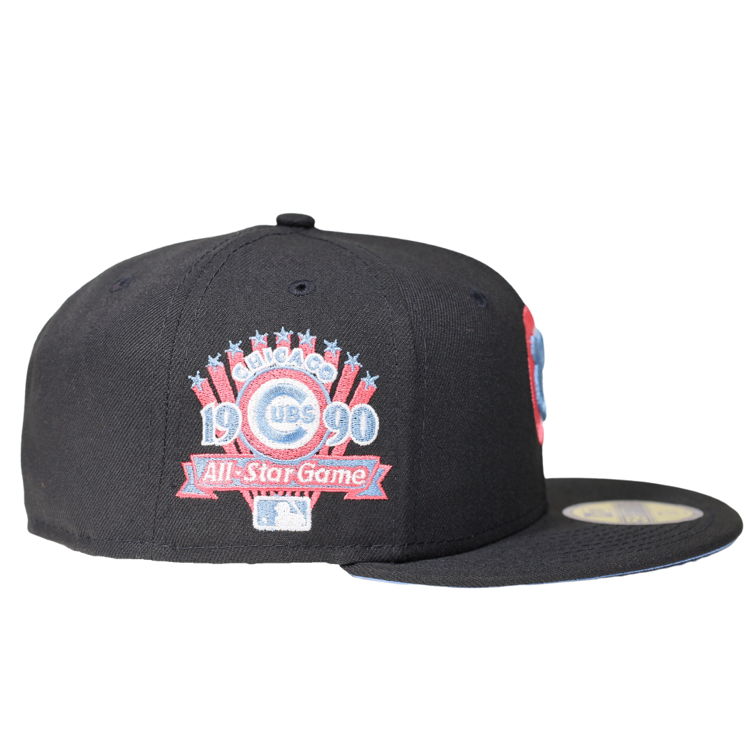 This New Era Chicago Cubs 1990 All-Star Game 59FIFTY Fitted Hat has a six panel structured high crown and embroidered eyelets with a fabric squatchee button. The fitted cap has a flat bill with a sweatband. The front panel features the Chicago Cubs logo embroidery.