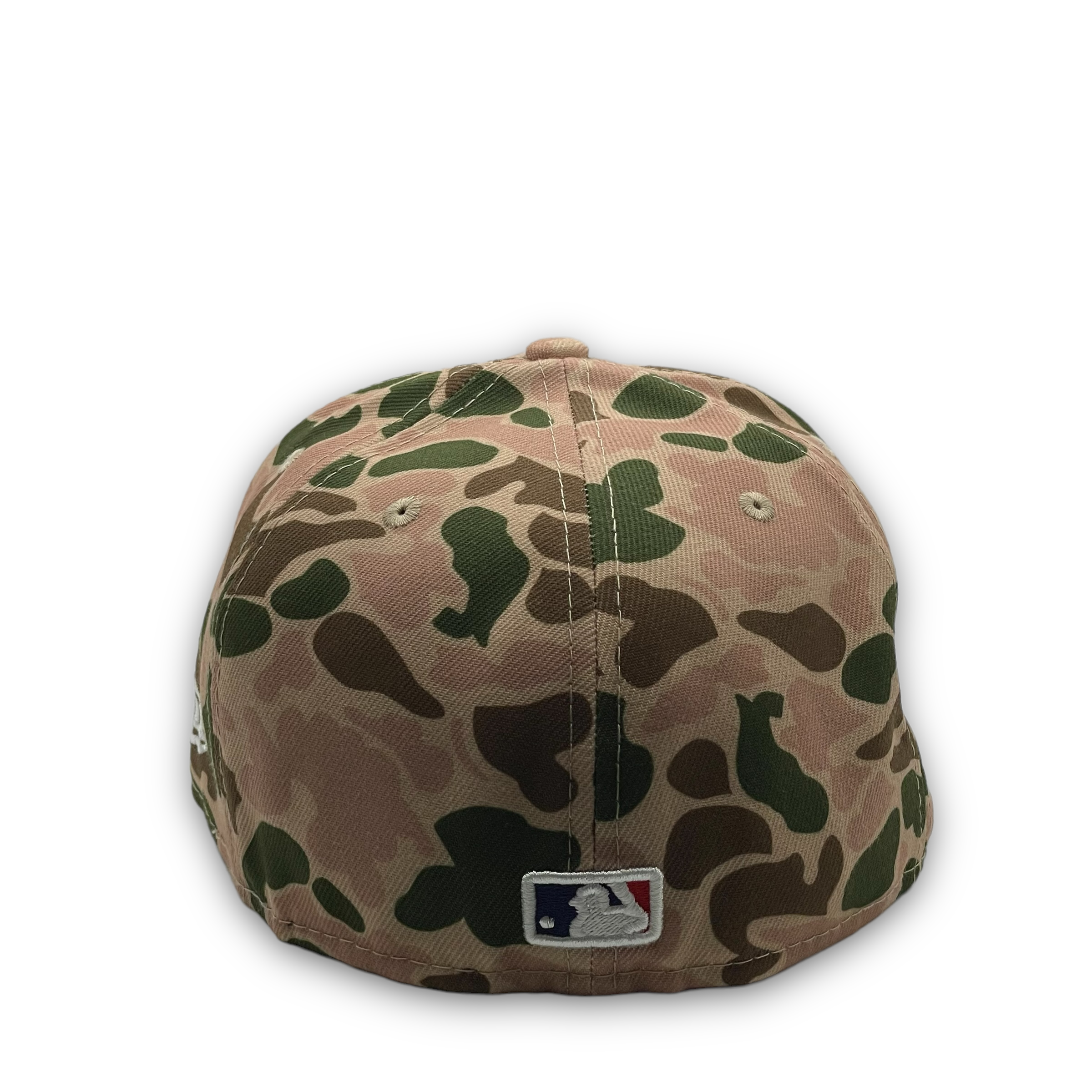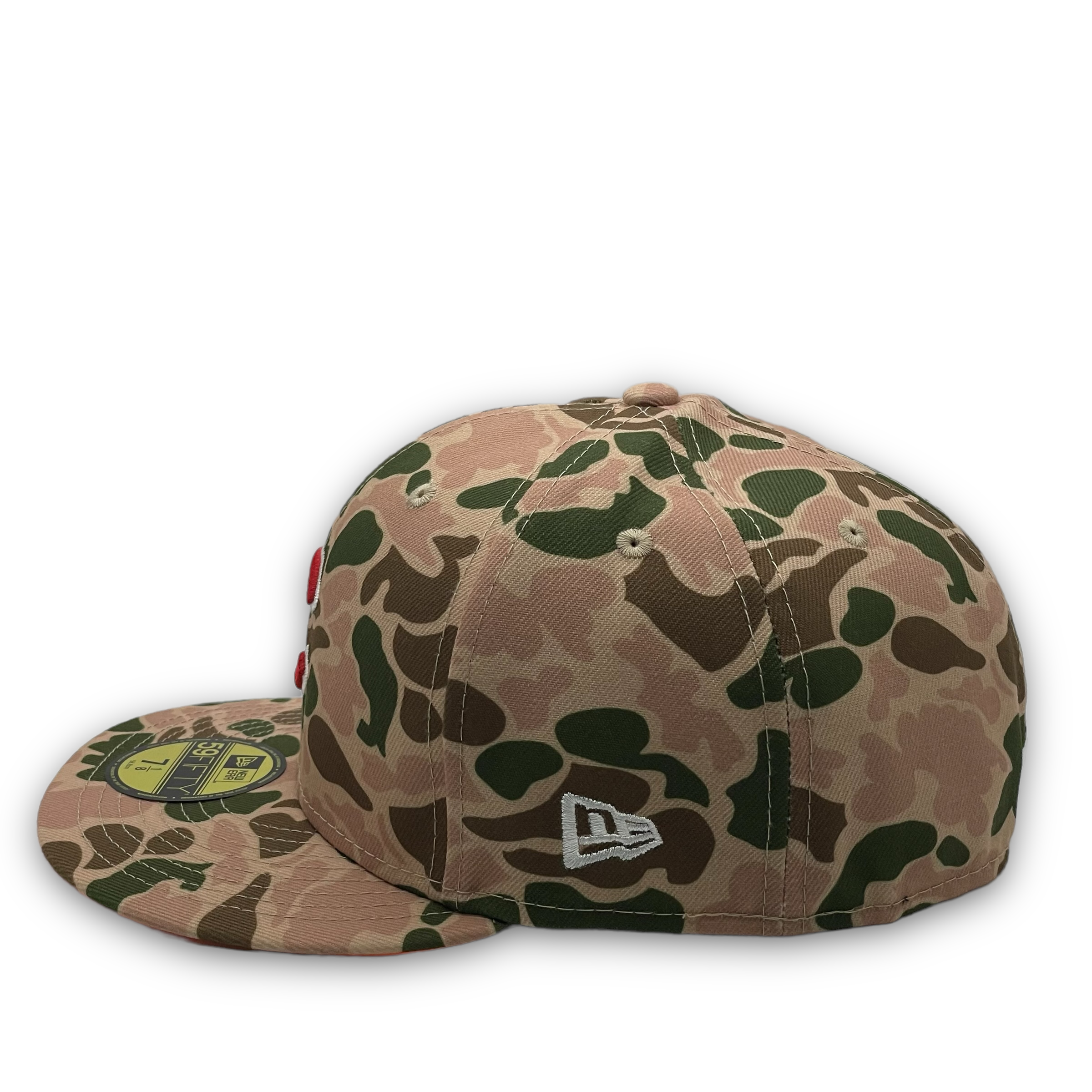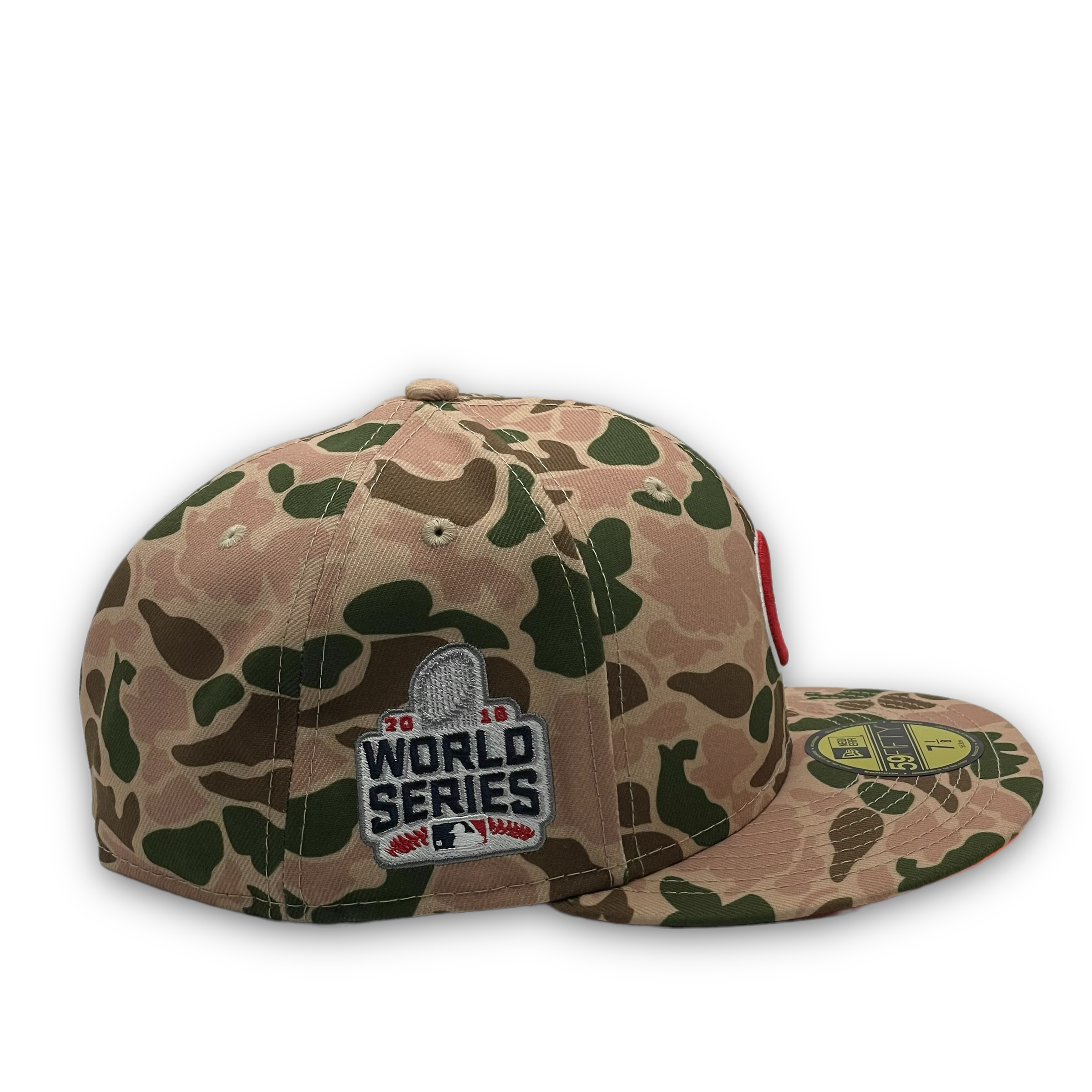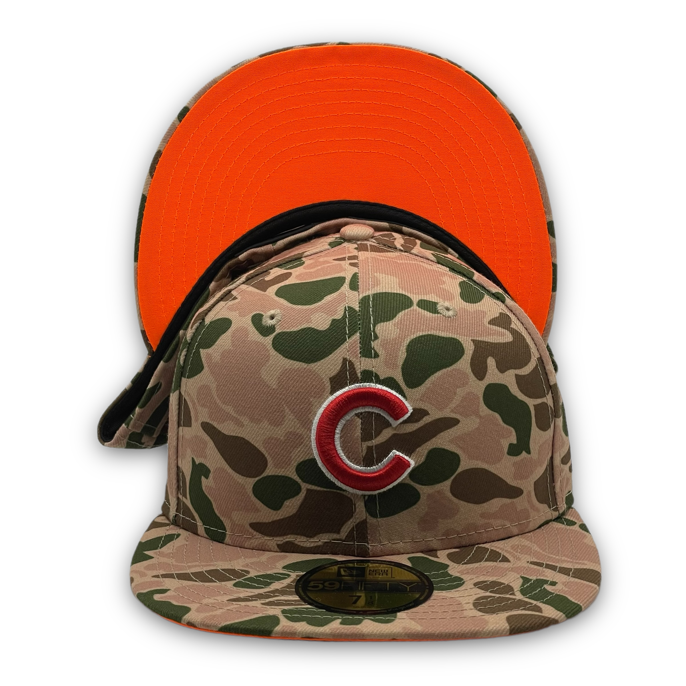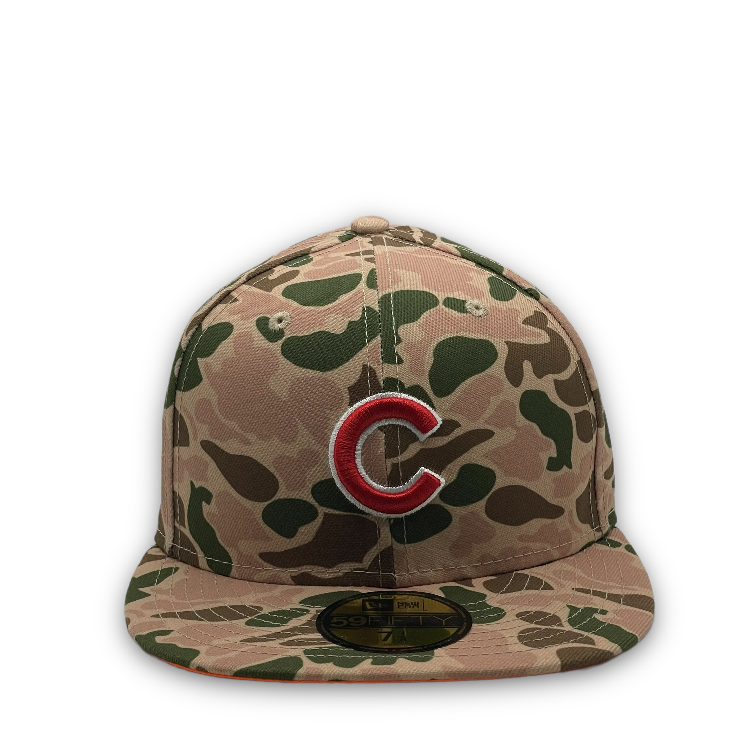 This New Era Chicago Cubs "Duck Camo" 2016 World Series 59FIFTY Fitted Hat was released by Burdeens Chicago. The fitted cap features a six panel structured high crown, embroidered eyelets and fabric squatchee button in a duck camo colorway. The front panel includes the Chicago Cubs logo embroidery and the New Era logo embroidered on the left panel and the official MLB insignia embroidered on the rear crown.