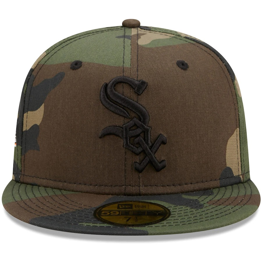 Be bold and use camouflage to draw attention to your Chicago White Sox pride with this 2005 World Series Flame Undervisor 59FIFTY hat. This New Era hat is decked out in rich embroidery dedicated to a memorable Chicago White Sox moment, which contrasts brilliantly against the camo crown. Chicago White Sox pride is hard to miss when in this fitted cap.
