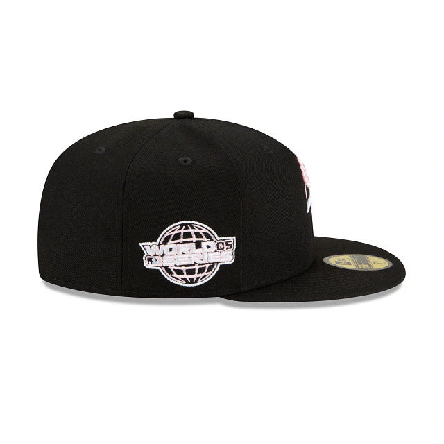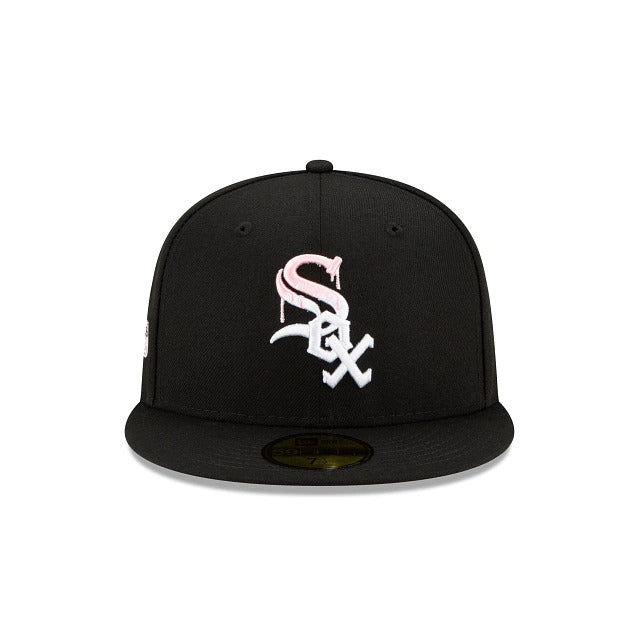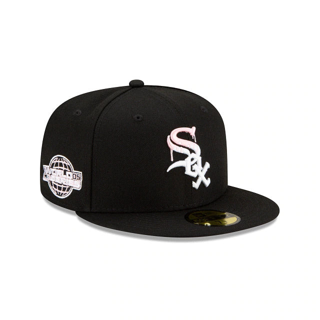 The Chicago White Sox Team Drip 59FIFTY Fitted Cap features the team embroidered logo with a pink drip detailing at the front panels with a World Series side patch at the right-wear side and the MLB Batterman logo at the rear. Additional details include a pink undervisor.