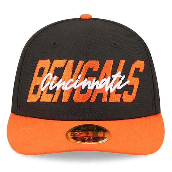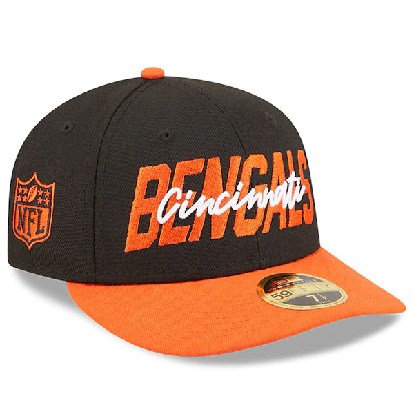 With your next pick, you should select this Cincinnati Bengals Low Profile 59FIFTY Fitted Hat from the official 2022 NFL Draft collection. This New Era cap features an NFL shield on the side and an official team color visor. Also sporting an embroidered version of your favorite team's logo on the rear of the cap, this gear has it all and will get you pumped for the upcoming Cincinnati Bengals season.