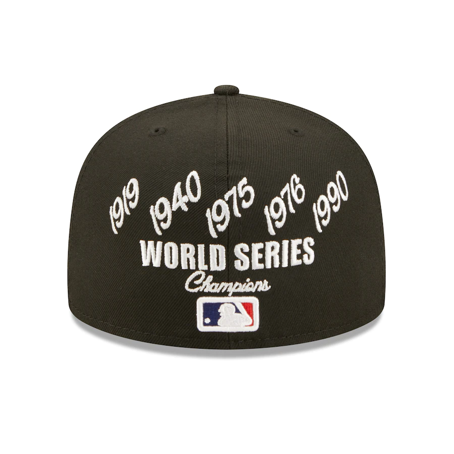 Put the spotlight on your Cincinnati Reds previously taking home the Commissioner's Trophy with this Crown 59FIFTY hat from New Era. It features the Cincinnati Reds logo in raised embroidery and commemorative 5x World Series Champions graphics embroidered on the front and back. The fitted construction also ensures a perfect fit.