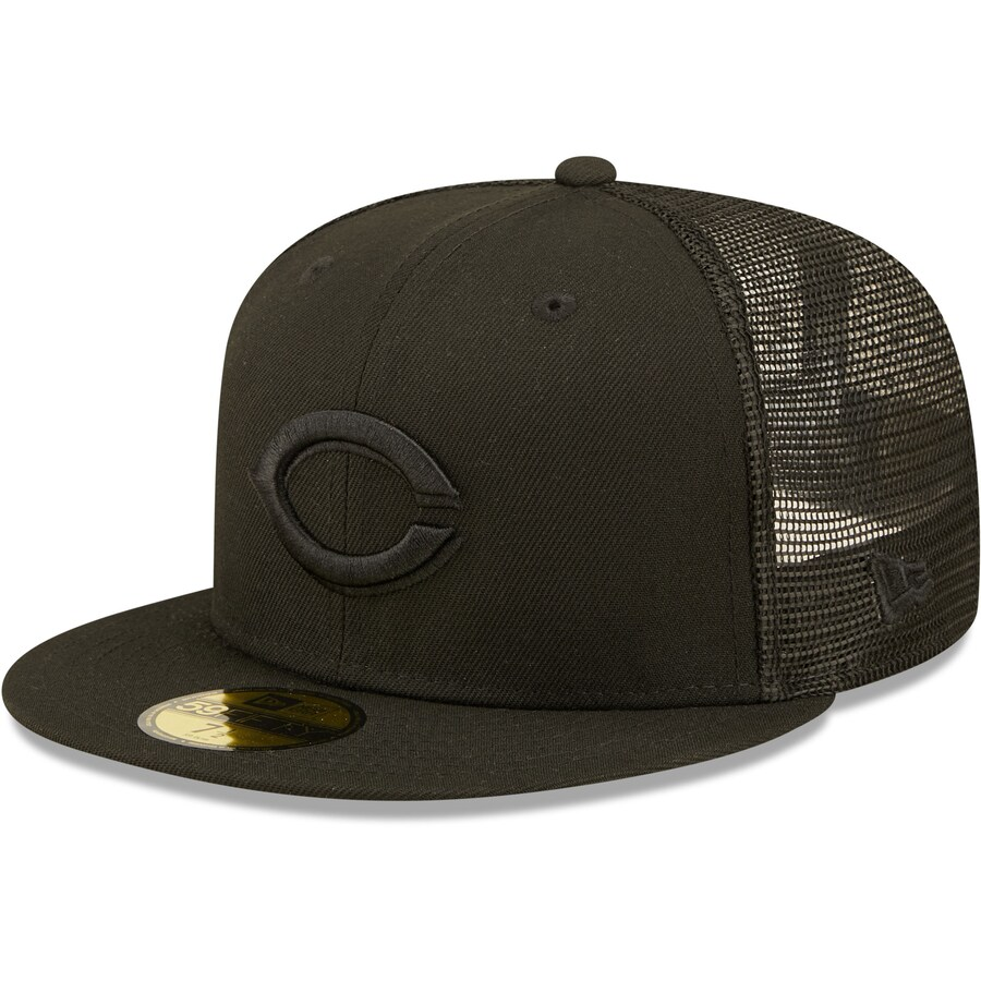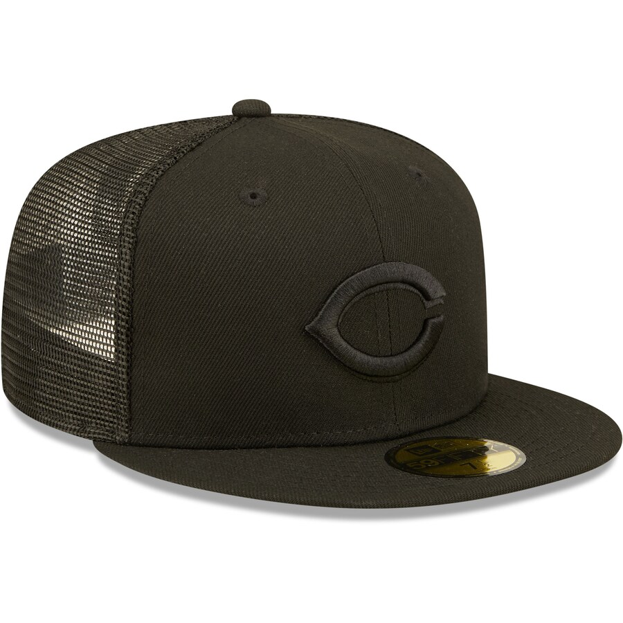 Flip the switch on your Cincinnati Reds fandom to dark mode with this New Era Trucker 59FIFTY fitted hat. It features a monochrome blackout design with sleek Cincinnati Reds embroidery on the front panels for a timeless look. Additionally, the mesh panels promote a breezy feel.