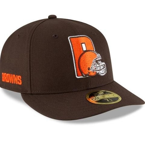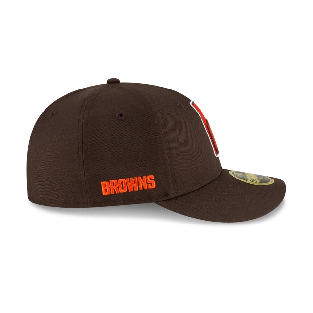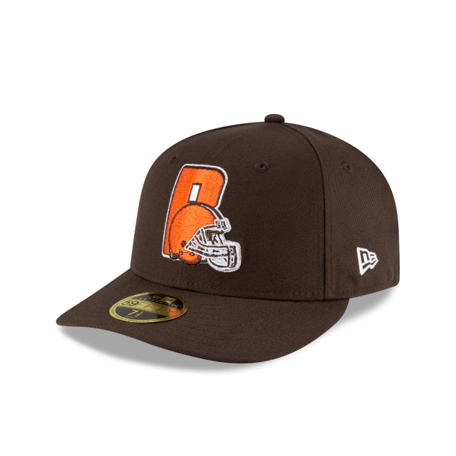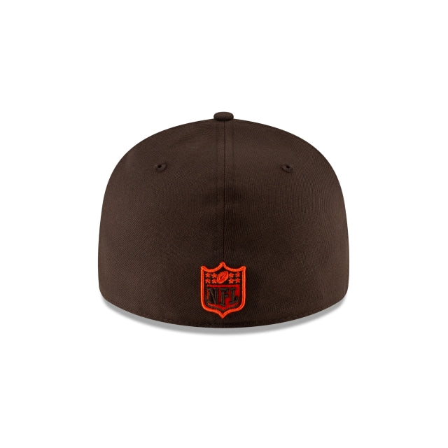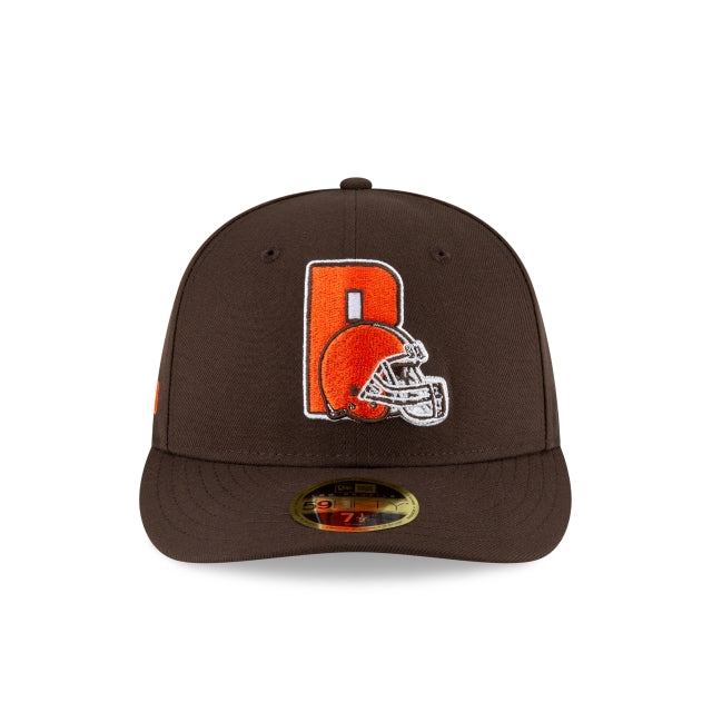 The Cleveland Browns Logo Mix Low Profile 59FIFTY Fitted Cap features a blend of Browns logos embroidered at the front panels with a team wordmark at the right-wear side and a team color NFL Shield at the rear. The undervisor of this cap matches the cap color.